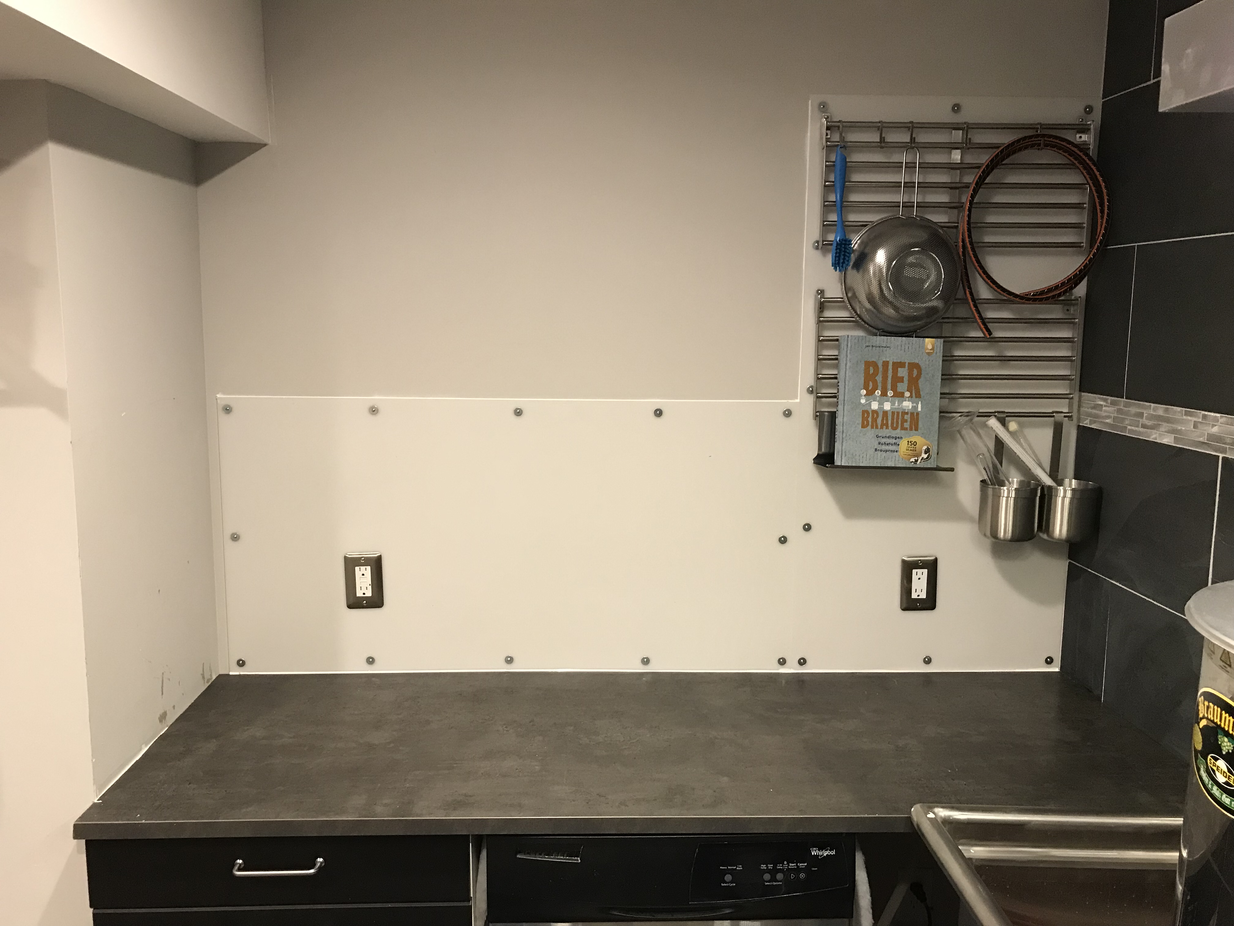 Jetzt ist die Wandverkleidung fertig. Sonntag nochmal eine IKEA Tour um 3 Edelstahl Boards zu kaufen. Fehlt noch die Verkleidung für die Mühle, das Holz ist angefragt (ich vermiss einen Baumarkt der mit der Plattensäge auch umgehen kann :crying ). Die Kühlschränke noch in ihre Nische und langsam kann ich an den ersten Sud denken :thumbup