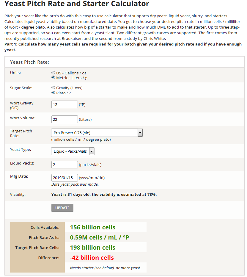 Dann wird einem auch schnell klar, dass 2 Packen Wyeast für 45l viel zu wenig sind. Für den Anfang kannst dir ja mal diese Seite durchlesen. Wenn du keinen Starter machen kannst, nimm mindestens 3 eher 4 Pack.