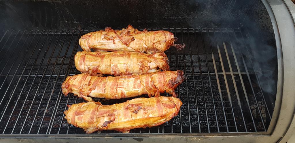 Iberico Schweinefilet im Speckmantel aus dem Smoker 2 x Pils das linke mit Magnum, Tettnager und Tradition....knackig, da rechte mit Mittelfrüh und Spalter Select...schmeckt meiner Frau besser.