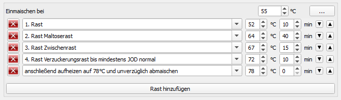 optionale Zwischenrast bei 67°C für 15min (höherer Vergärungsgrad)