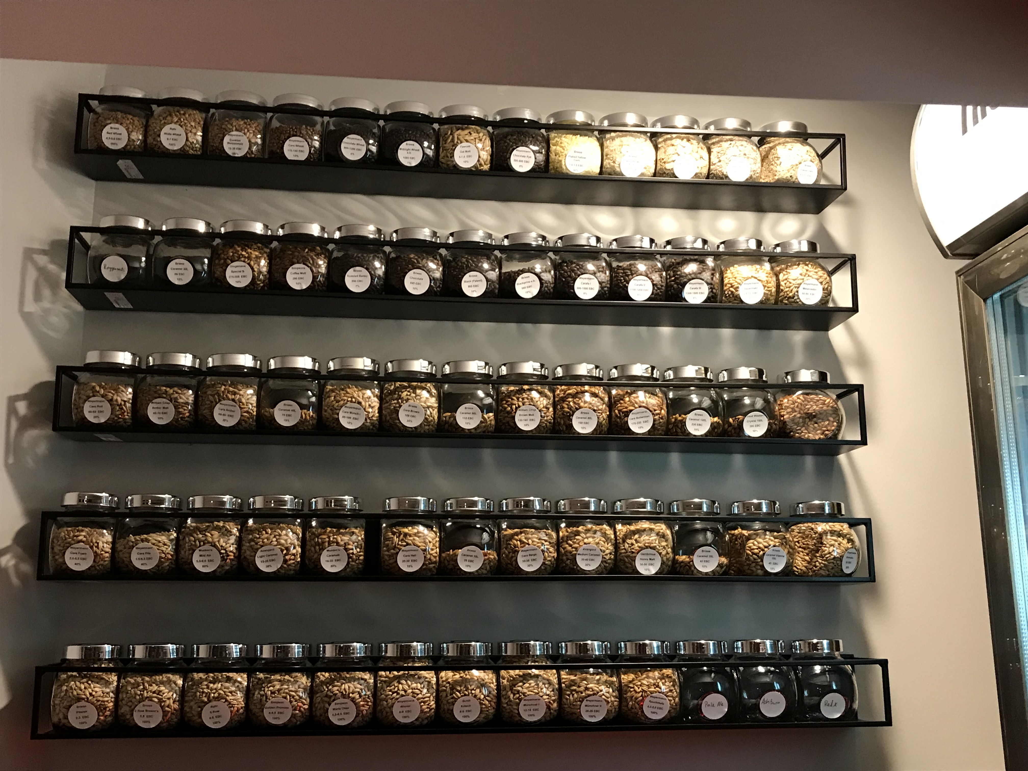 Jetzt hängt der „Malzschaukasten“. Noch sind nicht alle da, aber es werden mal die 65 „wichtigen“ Malze und Surrogate. Das Auge Braut ja bekanntlich mit.