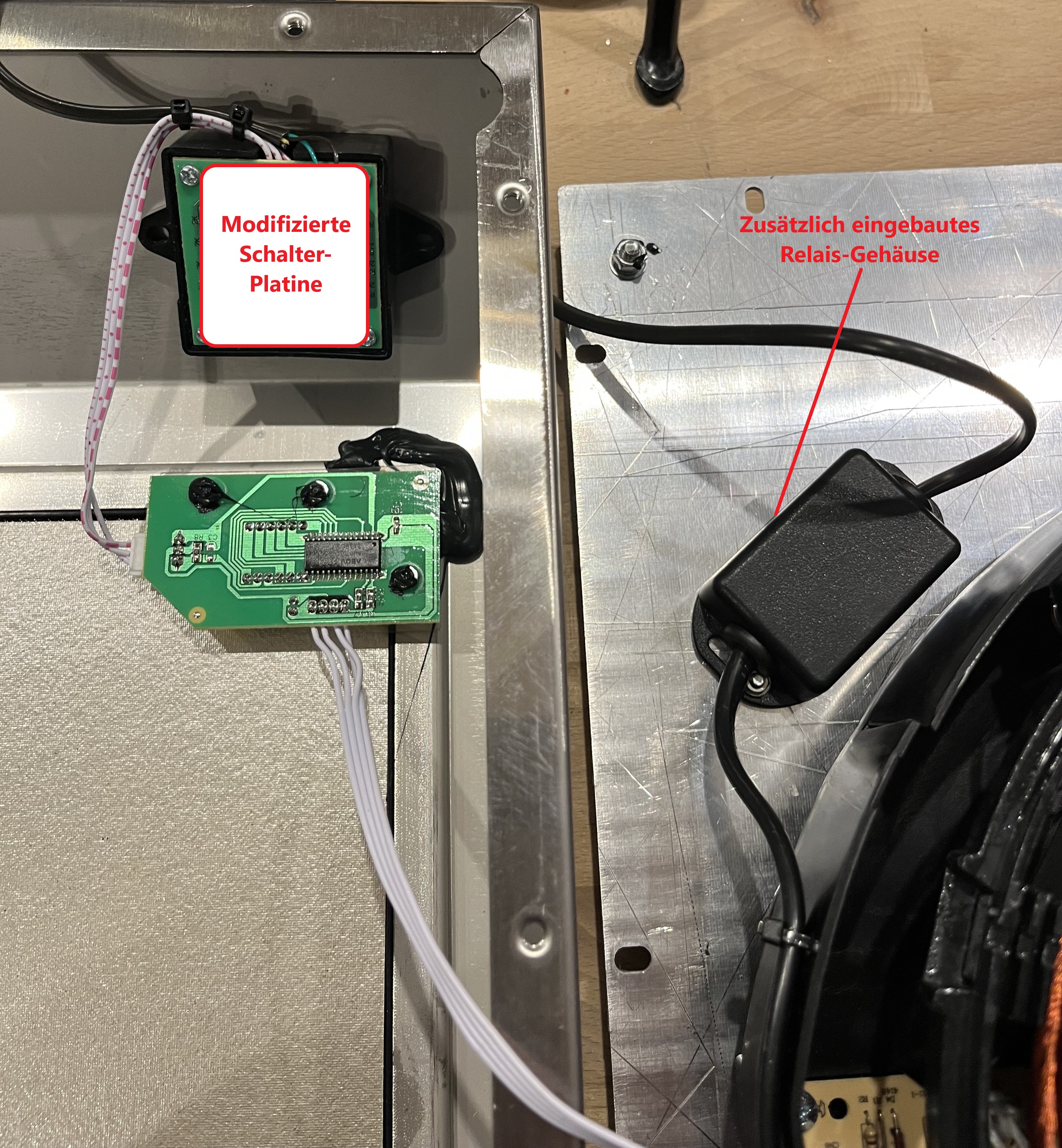 Allerdings habe ich einen Incbird ITC 1000 verwendet, bei dem ich das Relais ausgelötet habe, um in der Induktionsplatte ein Relais mit Wechselkontakt setzen zu können. Der ITC 1000 hat leider nur Schließer Relais.