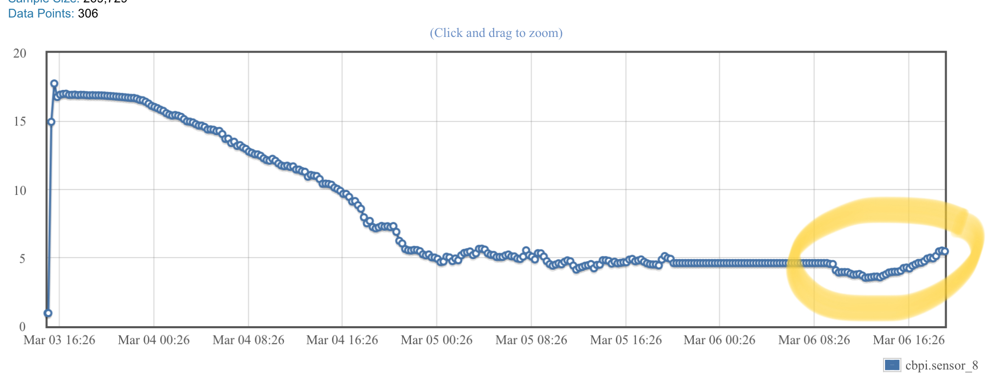Den Knick hinten raus (genauso wie bei dir) mit der iSpindel hab ich immer wenn einen Cold Crash mache.
