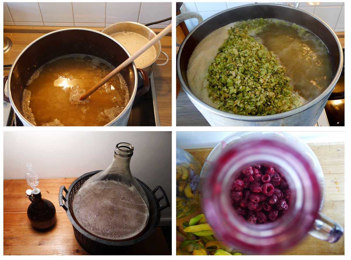 - Lambic-Kultur Starter: Enhält allerlei Mikroorganismen und wilde Hefen: Lacto, Pedio, Sacchs, Brett, uvm. . 4 Wochen vor dem Brautag ansetzen. 1 Liter Starterwürze aus 150g Pilsener Malz herstellen. Dazu ca. 5-6 Bodensätze verschiedener belgischer Geuzen (Boon, Oud Beersel, Moriau, Boon Kriek, …) Möglichst warm stellen, bei mir stand er neben der Heizung. Täglich aufschwenken.