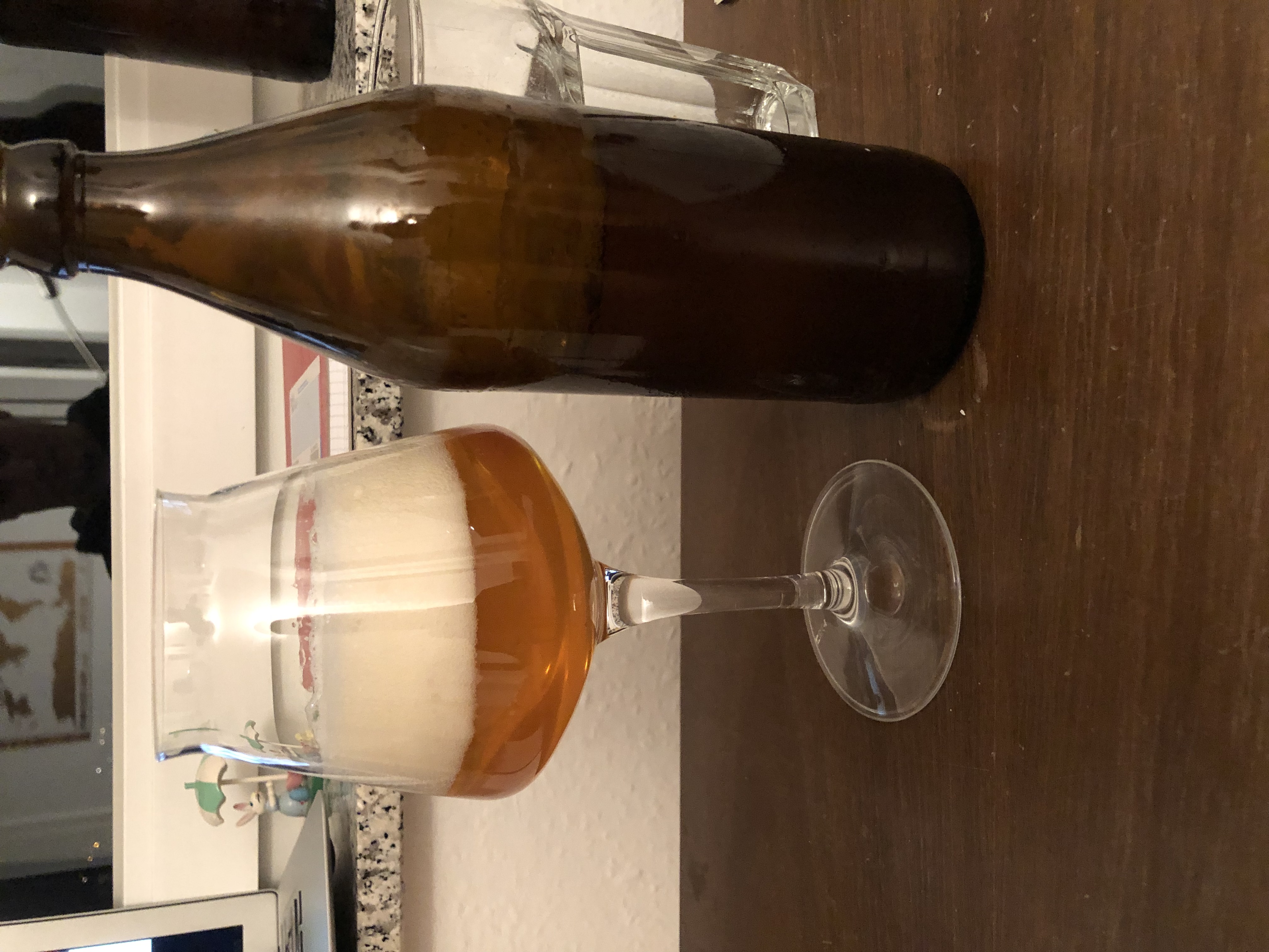 das war ein Kveik Experiment. Ich habe ein Pils Rezept (Pilsner,Carapils,Mittelfrüh,Magnum) genommen und #9 Ebbegarden. Das auf dem Bild war die letzte Flasche die ich noch im Kühlschrank gefunden habe, schon einige Monate alt und ganz lecker .. leider alle nun.