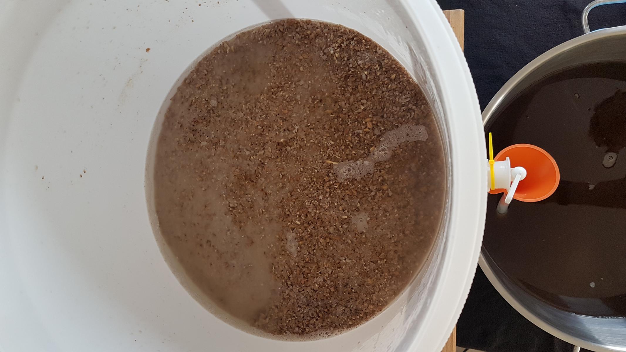 Das Läutern hat diesmal deutlich länger gedauert als beim Klosterbier. Ich nehme an, das liegt an dem recht hohen Anteil Weizen. Vielleicht habe ich aber auch etwas zu fein gemahlen. Die Läuterung dauerte jedenfalls gut 1 Stunde.