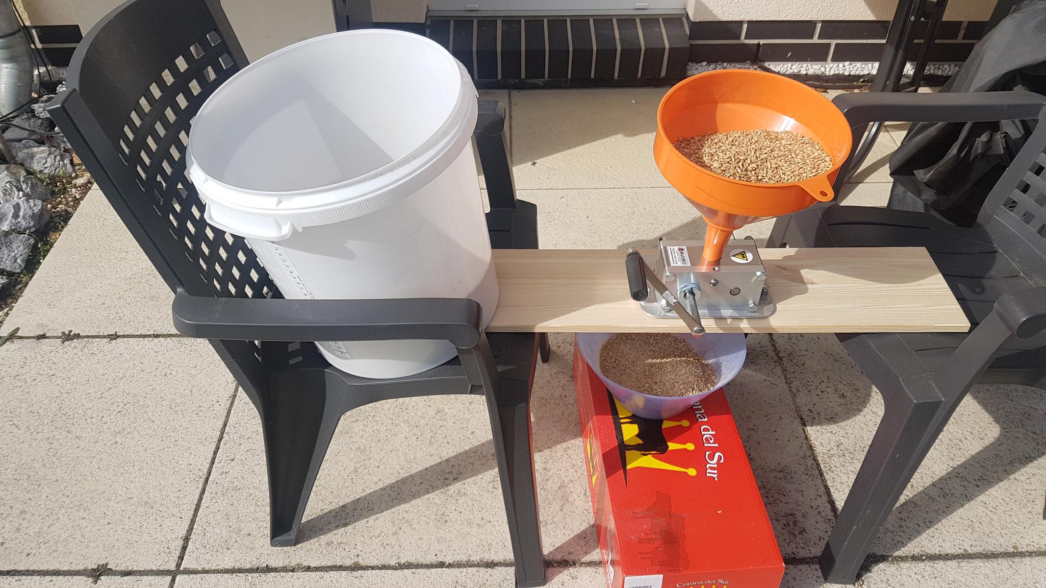 Zunächst habe ich meine neu erstandene Maltmülle (eine Mattmill Kompakt) ausprobiert.
