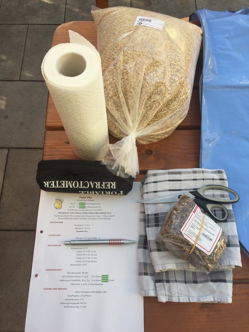 Also alles grün für ein Pils. Bei Maischemalzundmehr hatte ich mir das „Polar Pils“ von „London Rain“ ausgesucht. Warum? Der Kommentar „Trockenes, bitteres Pils norddeutscher Brauart mit Twist. 1. Platz im BJCP-Brauwettbewerb auf der HeimBrau Convention 2019 in Romrod.“ hat mich neugierig gemacht.