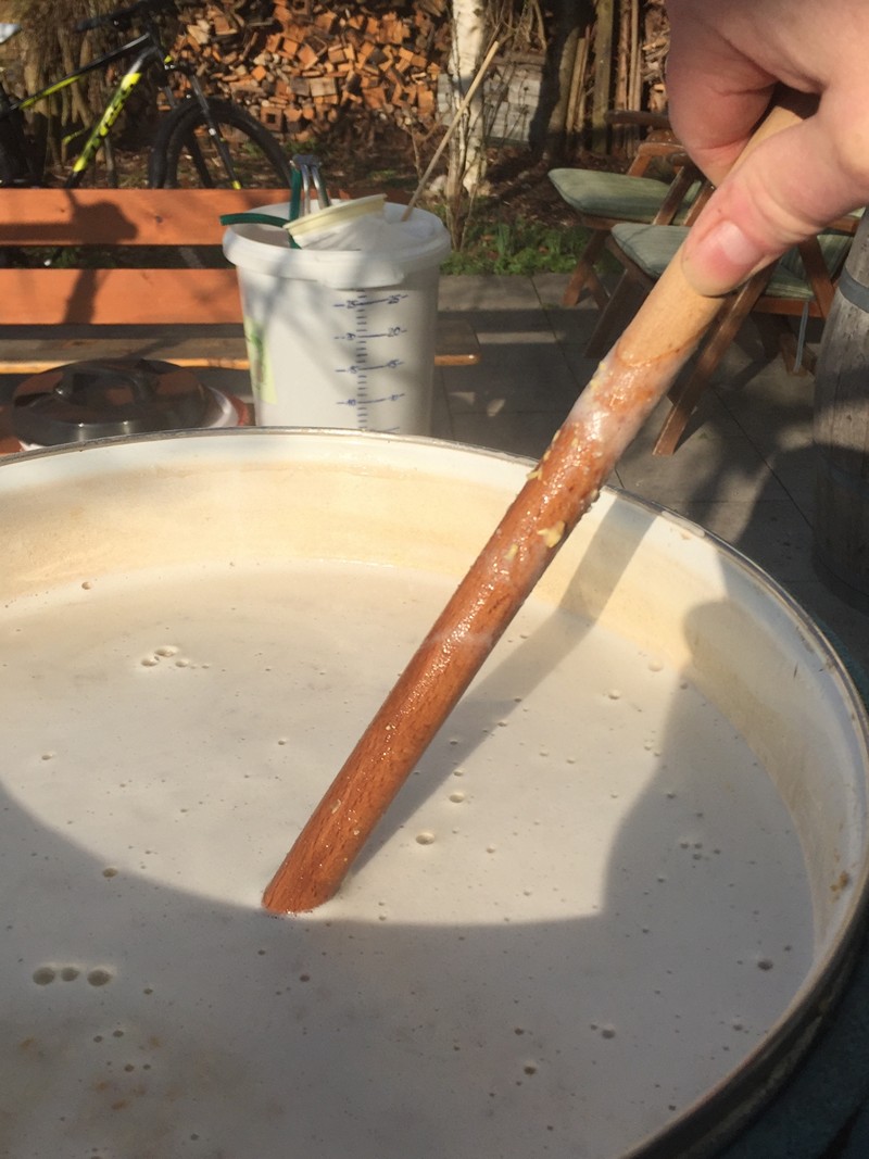 Craftbeer heißt Craftbeer weil man „Craft“ braucht zum Rühren. Auch habe ich diesmal mal links- und mal rechtsrum gerührt, nicht, dass die Maltosen und deren Freunde einen einseitigen Drehwurm bekommen. (Der eigentliche Grund war: Irgendwann geht’s in die Schulter …)