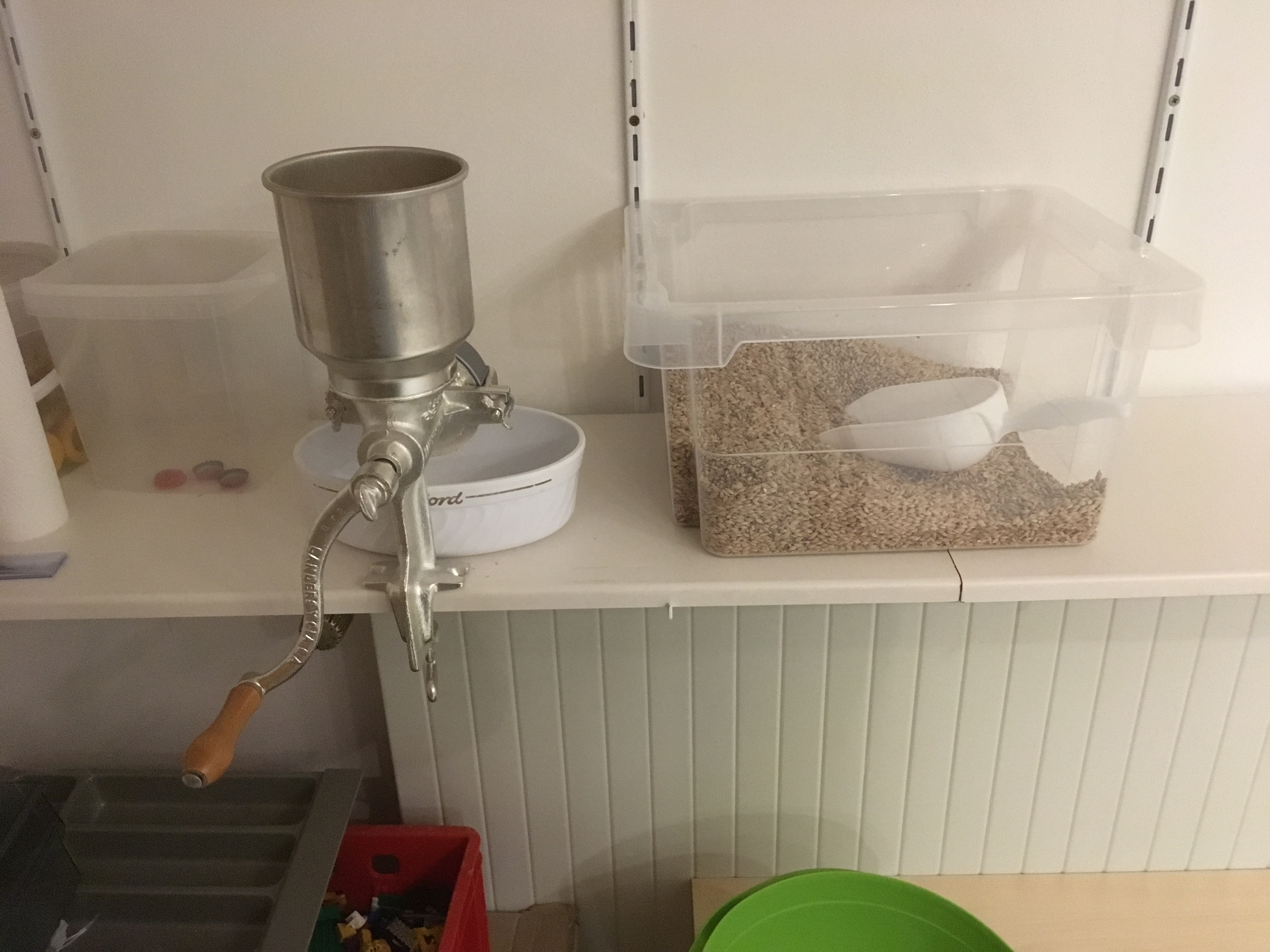 Normal wird das Malz einen Tag vor dem Brauen abgewogen und geschrotet, von Hand (Erinnerung an mich sollte ich mal mehr als 20l brauen, muss da was anderes her