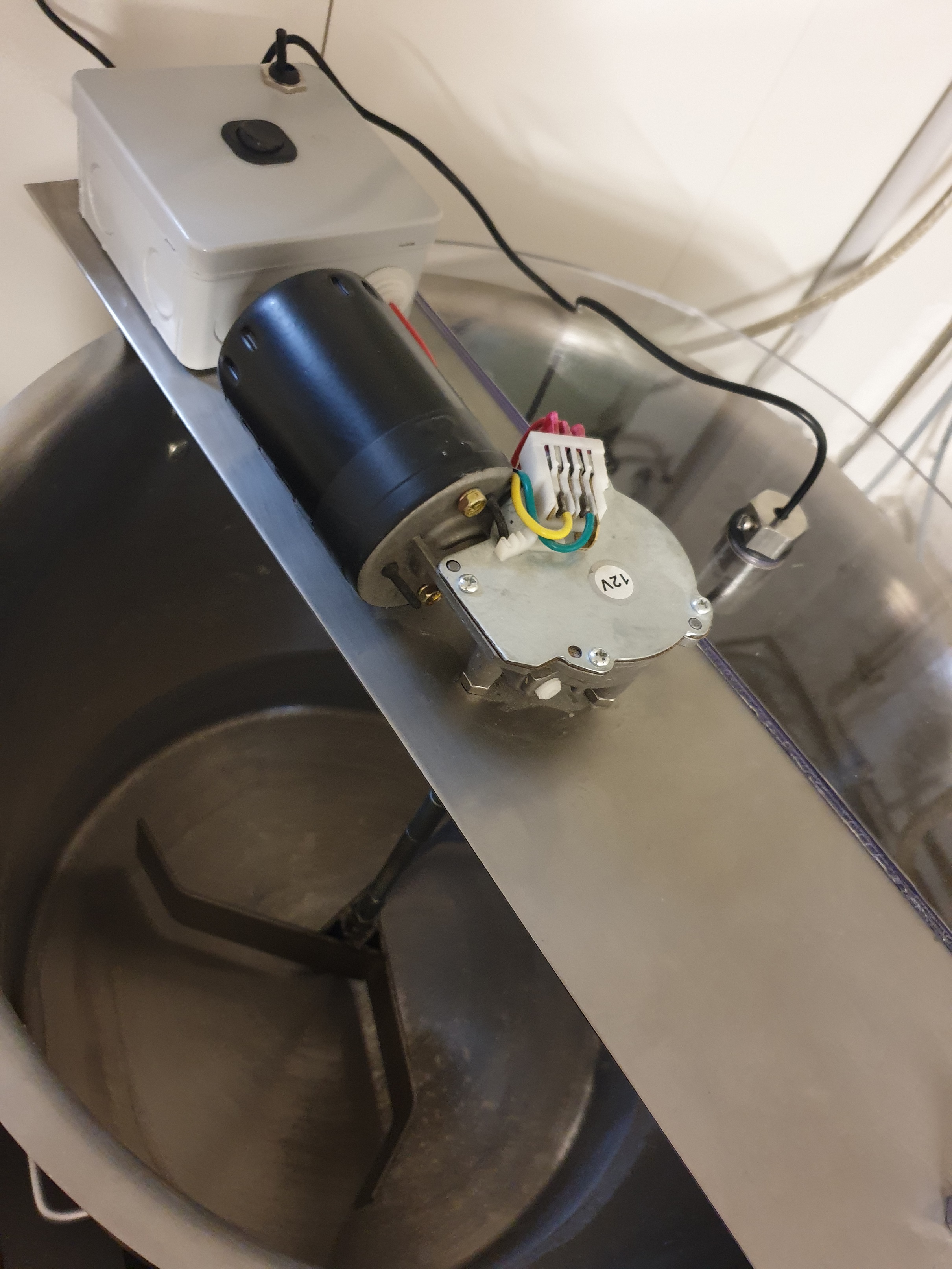 Die Anlage besteht aus einer 38l Maischepfanne mit 1 Zoll Auslauf und einem selbst gebauten Rührwerk,