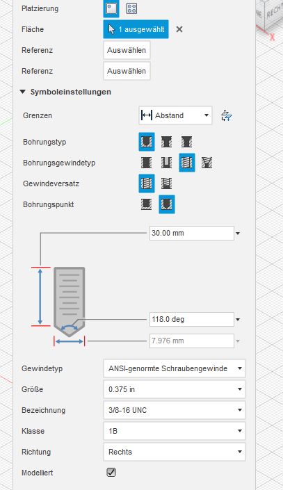 Wie bringst du Fusion 360 dazu ein UNC Gewinde 3/8“ zu zeichnen?