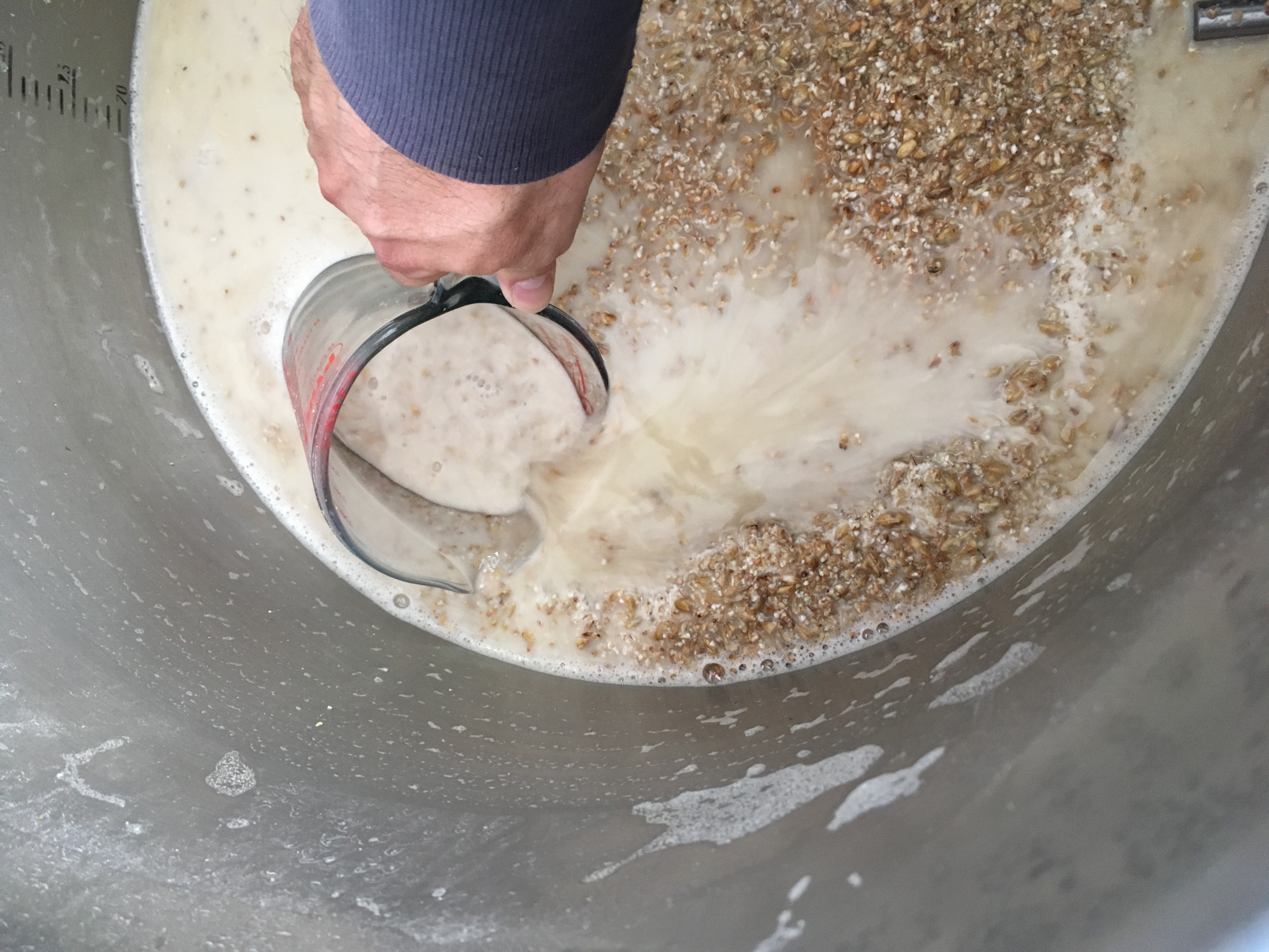 12 Liter Läutermaische ziehen um auf 75°C zu kommen, wenn iodnormal, läutern.