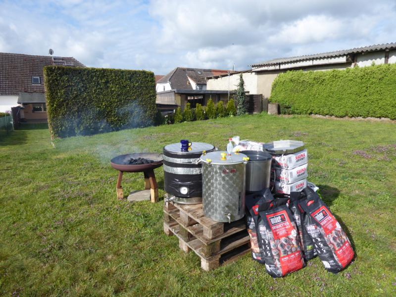 Und noch was zum Zeitmanagement: Die Aufheizzeiten sind gegenüber Elektro oder Gas sensationell kurz. Wenn man will in 60 Sekunden von 0 auf 100. Aber ... die beim Maischen und Kochen eingesparte Zeit hat man im Vorfeld zum Aufheizen der Steine auch schon aufgewandt. Insgesamt also eher ein Nullsummenspiel.