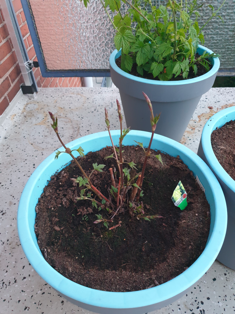 Der Einfachheit halber habe ich den Hopfen mal in grosse Kübel eingepflanzt. Will ihn nicht im ganzen Garten haben.