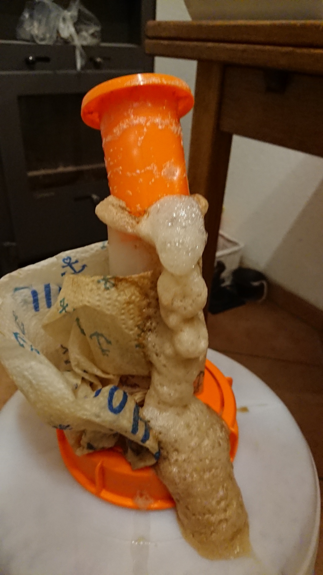Genau ich meine das Gefäß mit Wasser, in den der Schlauch kommt. Hatte im Internet auf den amerikanischen Seiten immer gelesen, dass man das Wasser mit Starsan mischen soll