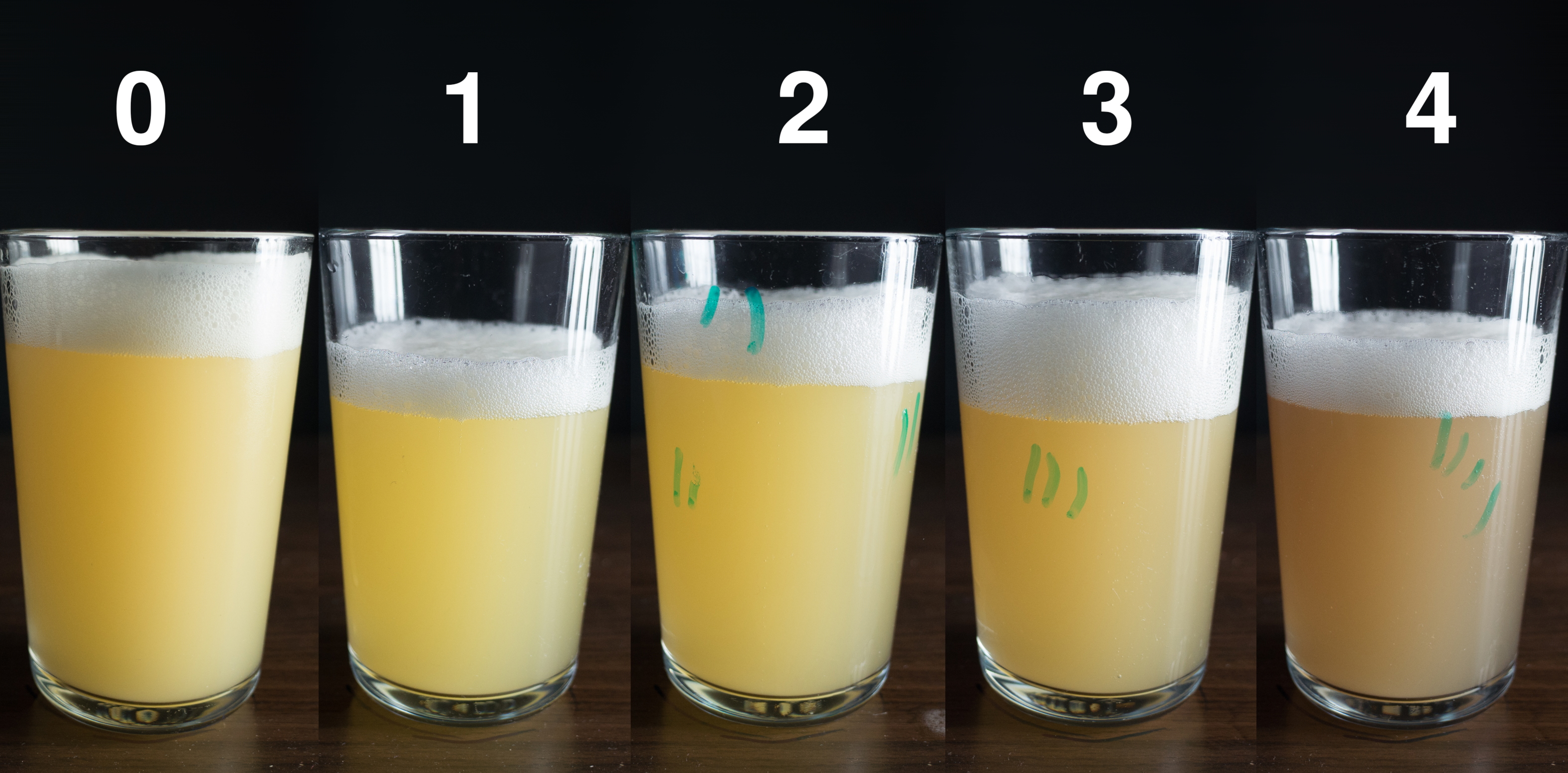 In diesem GIF habe ich versucht, ein solches "Blop" festzuhalten. Schaut auf die Flasche vorne links.
