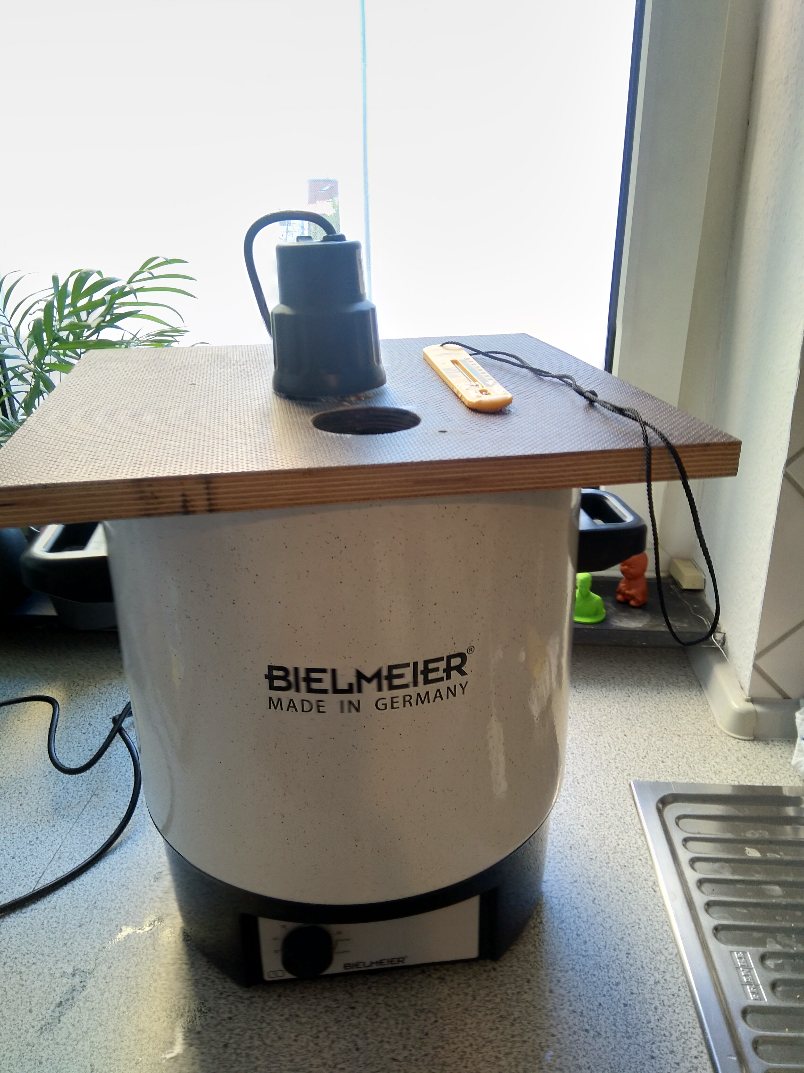 Besonders gut ist...das man neben dem Brauen auch etwas basteln kann. Entsprechend bin ich stolzer Besitzer einer Kühlspindel und eines Rührwerks (Basis ist ein Drehspieß Grillmotor ... leider dreht dieser noch etwas zu langsam)