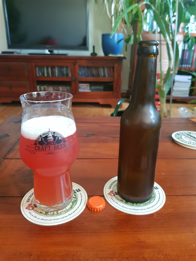 Mein Katastrophenbier. HG mit Champagnerhefe, Aufkräusen mit Weizenhefe und 10% frischer Würze, nochmal Aufkräusen mit 80g/l Fruchtmark.