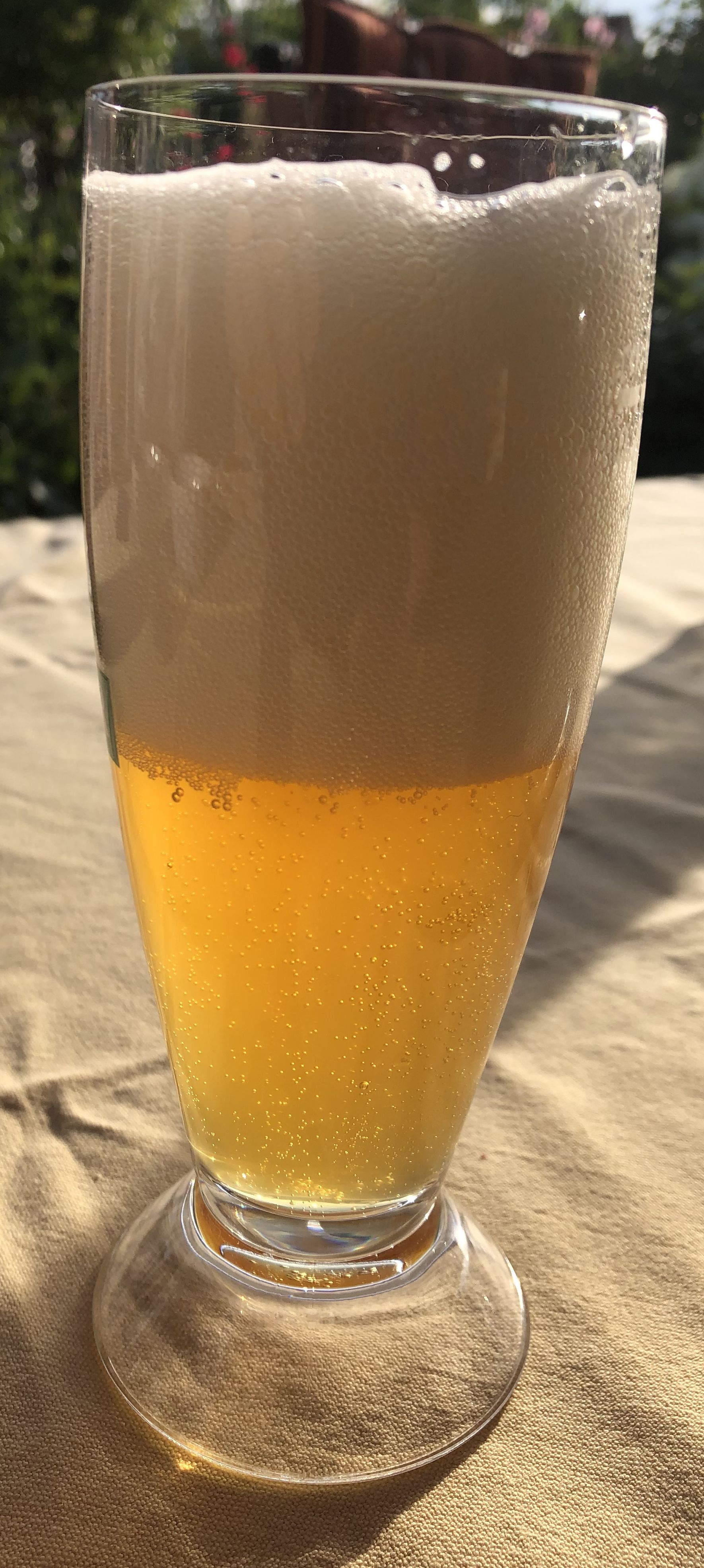 Kehlengold (das heisst wirklich so!), unfiltriertes Vollbier mit 4,9% Volt von Schanzenbräu (Nürnberg). Schön hopfig, hat hinten raus ein tolles Hopfenaroma das anhält.