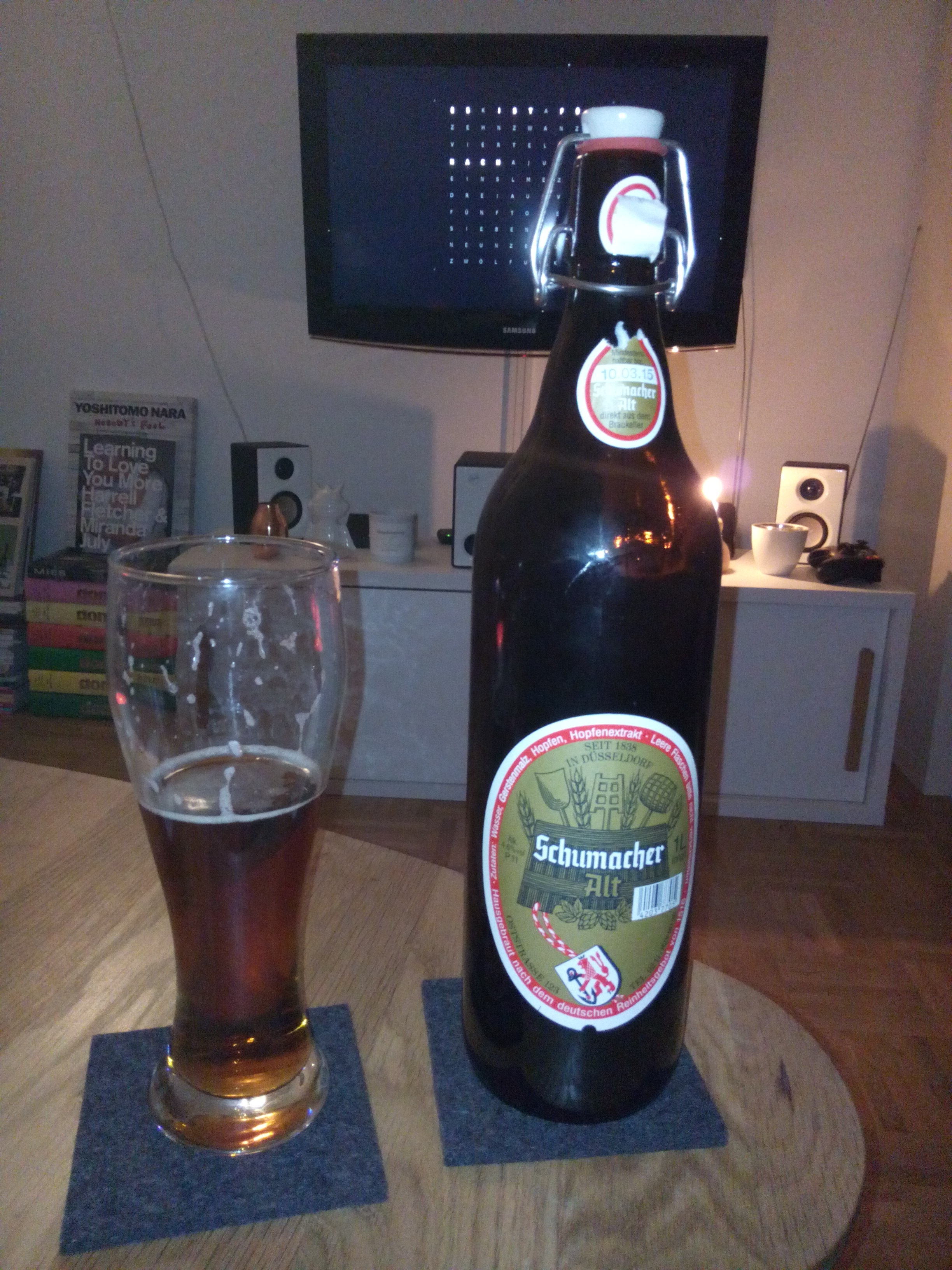 Kannst Du das empfehlen? Das gibts bei uns im Supermarkt und mich reizen immer die 1 Liter-Bügelflaschen. Habe bisher aber immer davor zurückgeschreckt 1 Liter Bier hier stehen zu haben, die ich nicht trinken will. Ich bin eigentlich auch kein großer Alt-Fan, habe aber letztens ein Schlüssel getrunken und fand das z.B. durchaus lecker.Alt-Phex hat geschrieben: Flasche Schumacher Alt.