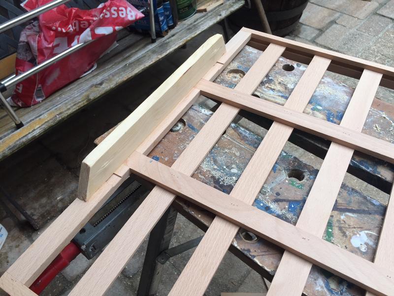 Da der Kühlraum nach hinten etwas schmaler als im Türbereich wird, musste ich die ganze Konstruktion noch "konisch" hobeln.