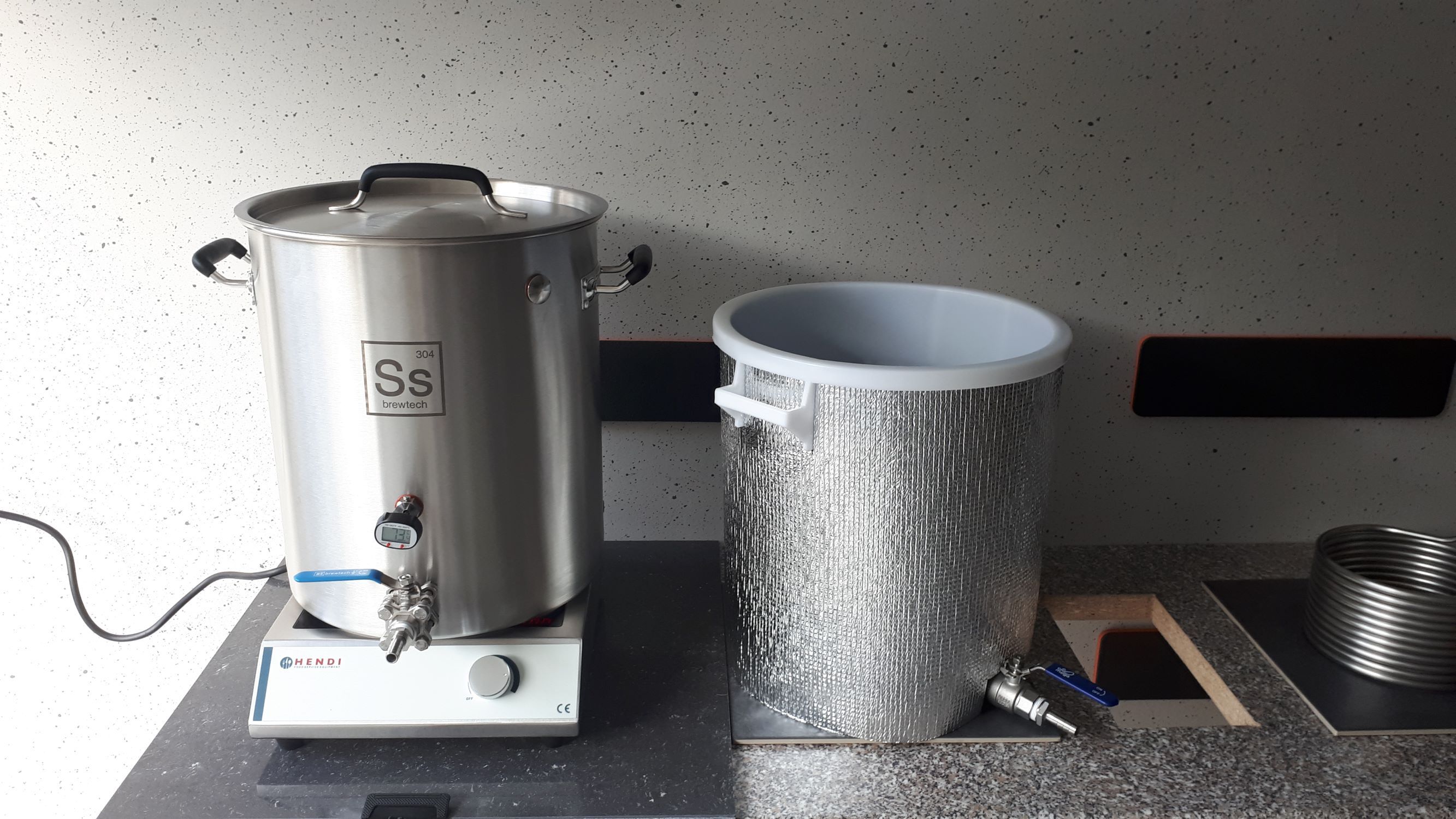 Im August (2019) werde ich mich ans Maischebrauen wagen. Ein 37 Liter (10 Gal) Ss Brewtech Braukessel sowie eine Hendi 3500M Induktionsplatte fand ich jüngst auf meinem "Geburtstagstisch". Ansonsten habe ich noch eine Läuterhexe in den klassischen 30 Liter Maische- und Läuterbottich eingebaut. Ich bin wirklich mal gespannt auf das Maischebrauen.