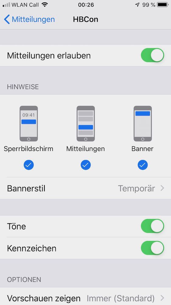 Die iOS Nachrichten kommen sofort.
