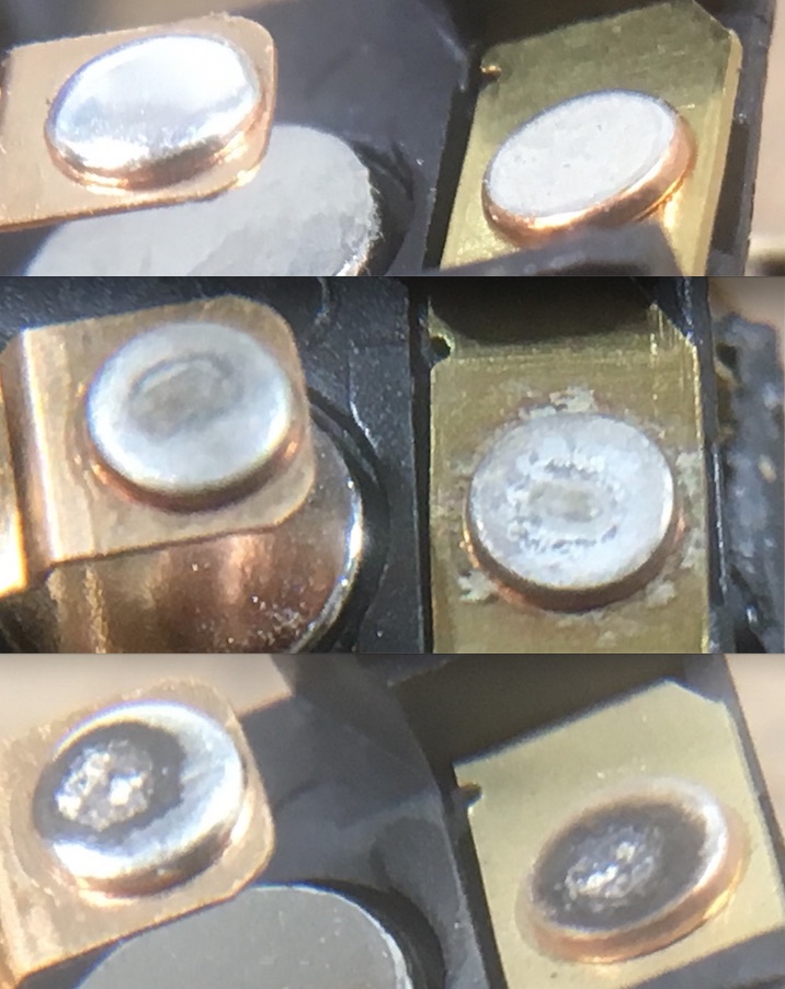 Der Kondensator vom Motor erzeugt einen sehr hohen Strom, welcher dann die Kontakte verschweißen kann.