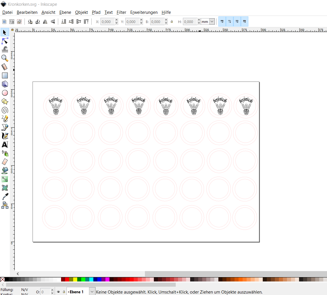 Vorbereitete Schablone um die Kronkorken richtig auszurichten