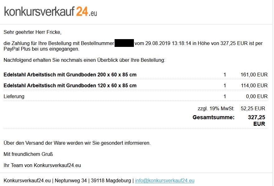 Re: Edelstahl Arbeitstisch