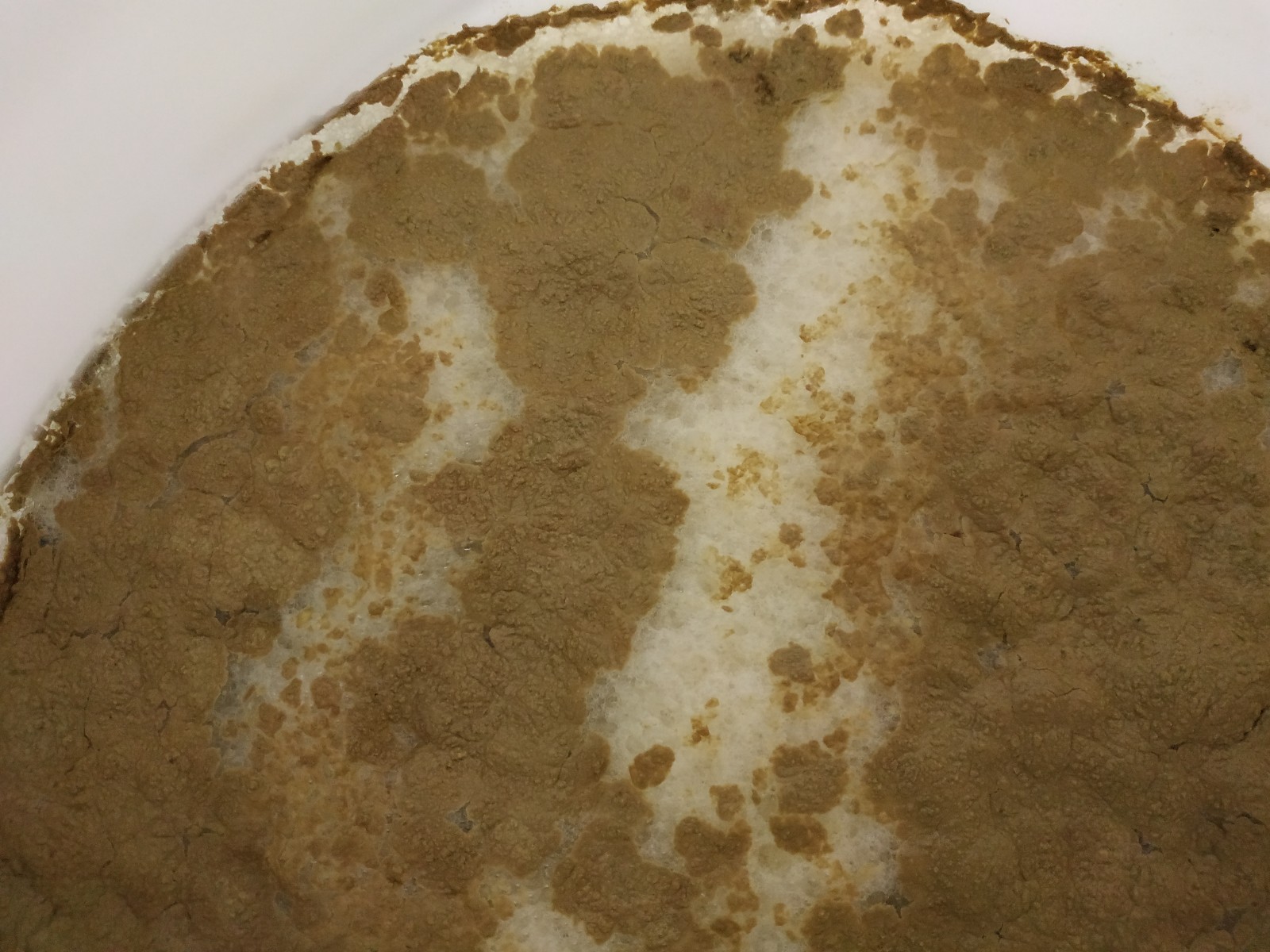 Habe beim Hopfenstopfen gerade folgendes Bild der Kräusendecke angetroffen und so noch nie gesehen. Für mein Empfinden ungewöhnlich viel braune Flecken darin. Habe mit der Wyeast 2124 (flüssig) bei 8°C angestellt. Als diese nach 48h nicht angekommen war habe ich mit 2 Pack Trockenhefe desselben Stamms nachgeholfen. Diese kam schnell an. Gegenwärtig bei 9.5°C seit 3 Tagen in der Gärung.