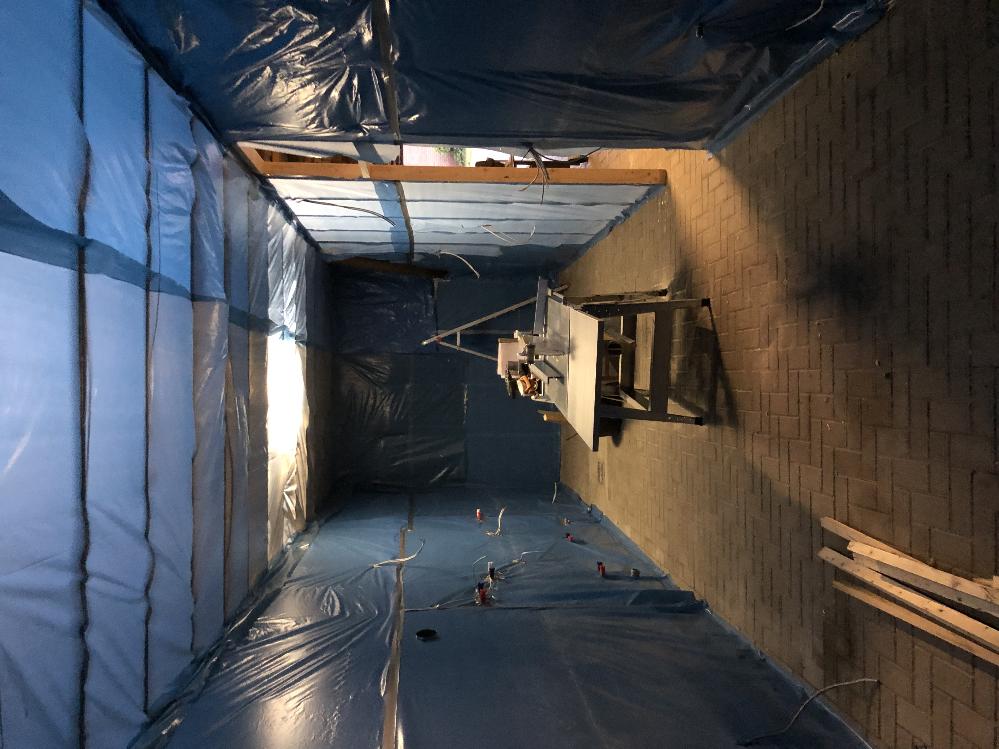 Als nächster Schritt wurden die Zwischenwände für das Lager und den Aufenthaltsraum gezogen, bevor die Gipskartonplatten ihren Ort der Bestimmung gefunden haben: