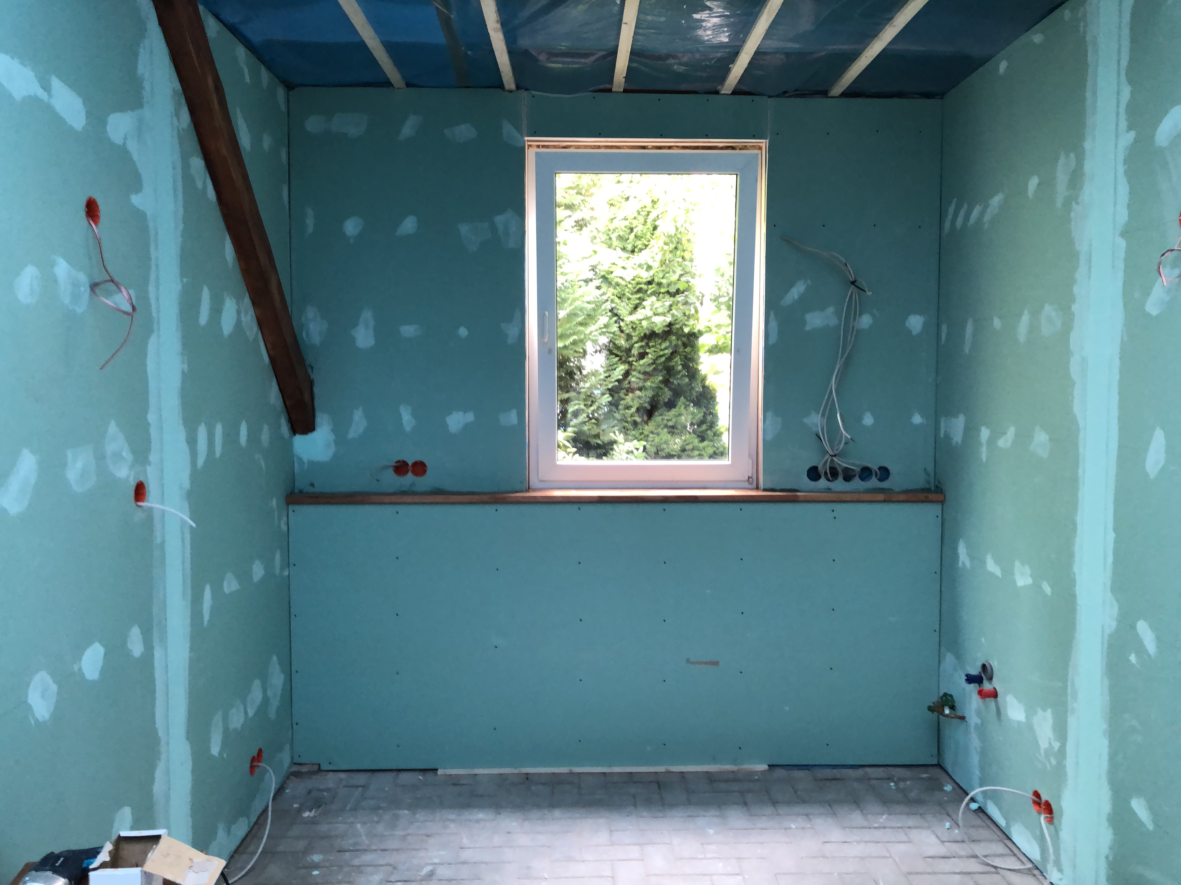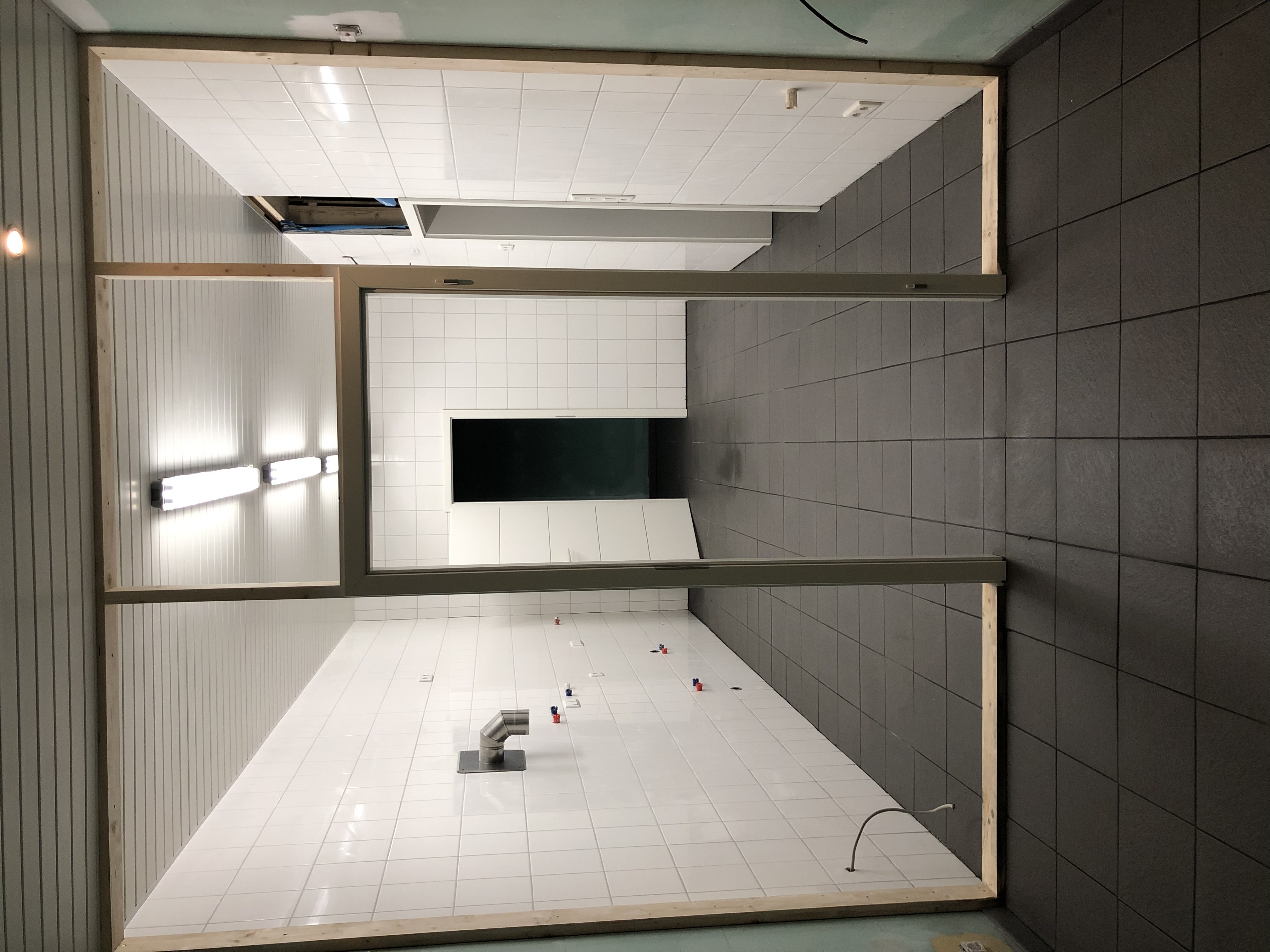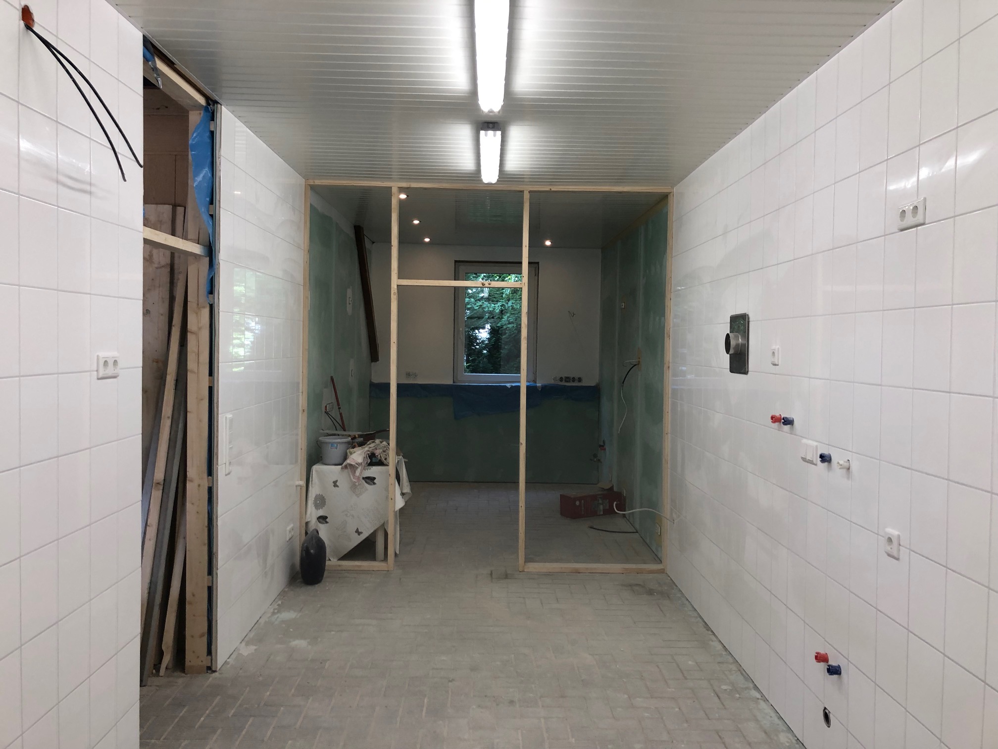 Am Wochenende geht es ans Verfugen der Fliesen. In der nächsten Woche kommen dann noch die Sockelfliesen im Lagerraum und im Aufenthaltsraum. Dann können die ersten Wände gestrichen werden.