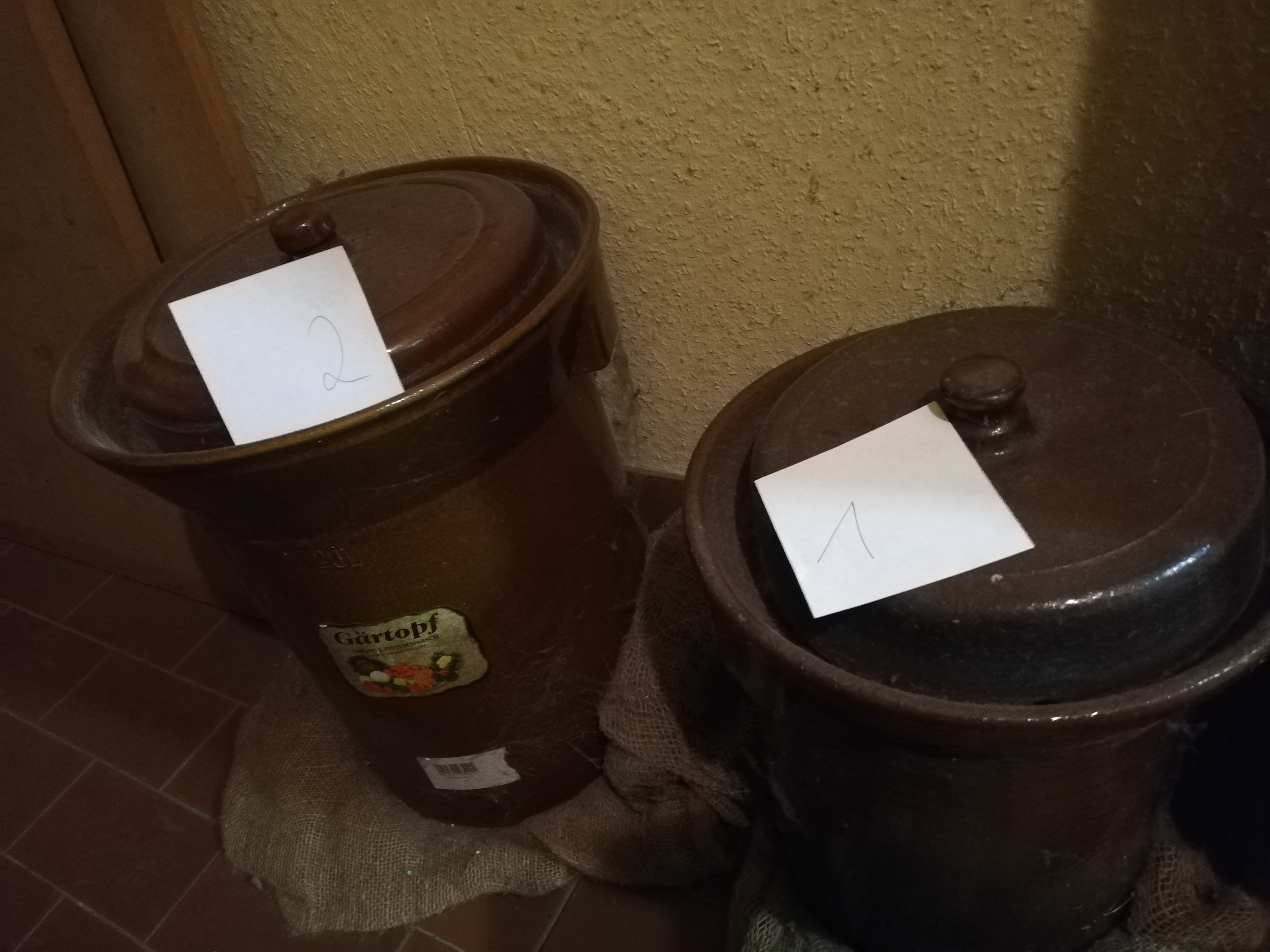 dass man darin wieder gären kann. In den Tonkrügen sind bestimmt auch jede Menge Lactobazillen von der milchsauren Krautvergärung.