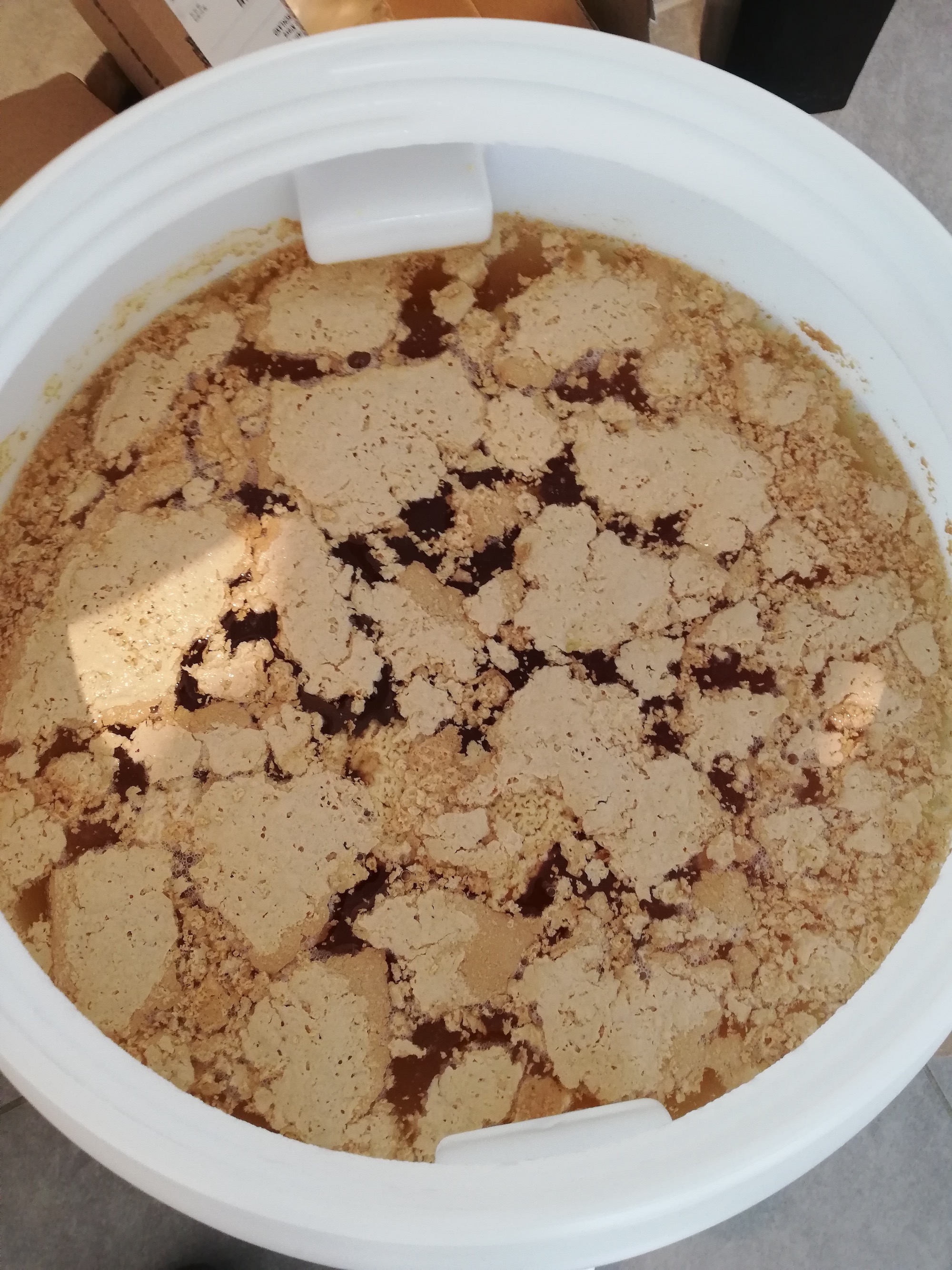 das ist mein 10. Sud und dieses Mal hat sich der auf den Fotos gezeigte Schmodder beim Gären auf meinem Bier gebildet. Zunächst dachte ich das wäre die Hefe, die sonst immer von selbst gegen Ende nach unten gesunken war. Bei näherem Betrachten sieht das aber eher nach einer Mischung von Hefe und Proteinen aus. Was meint ihr?