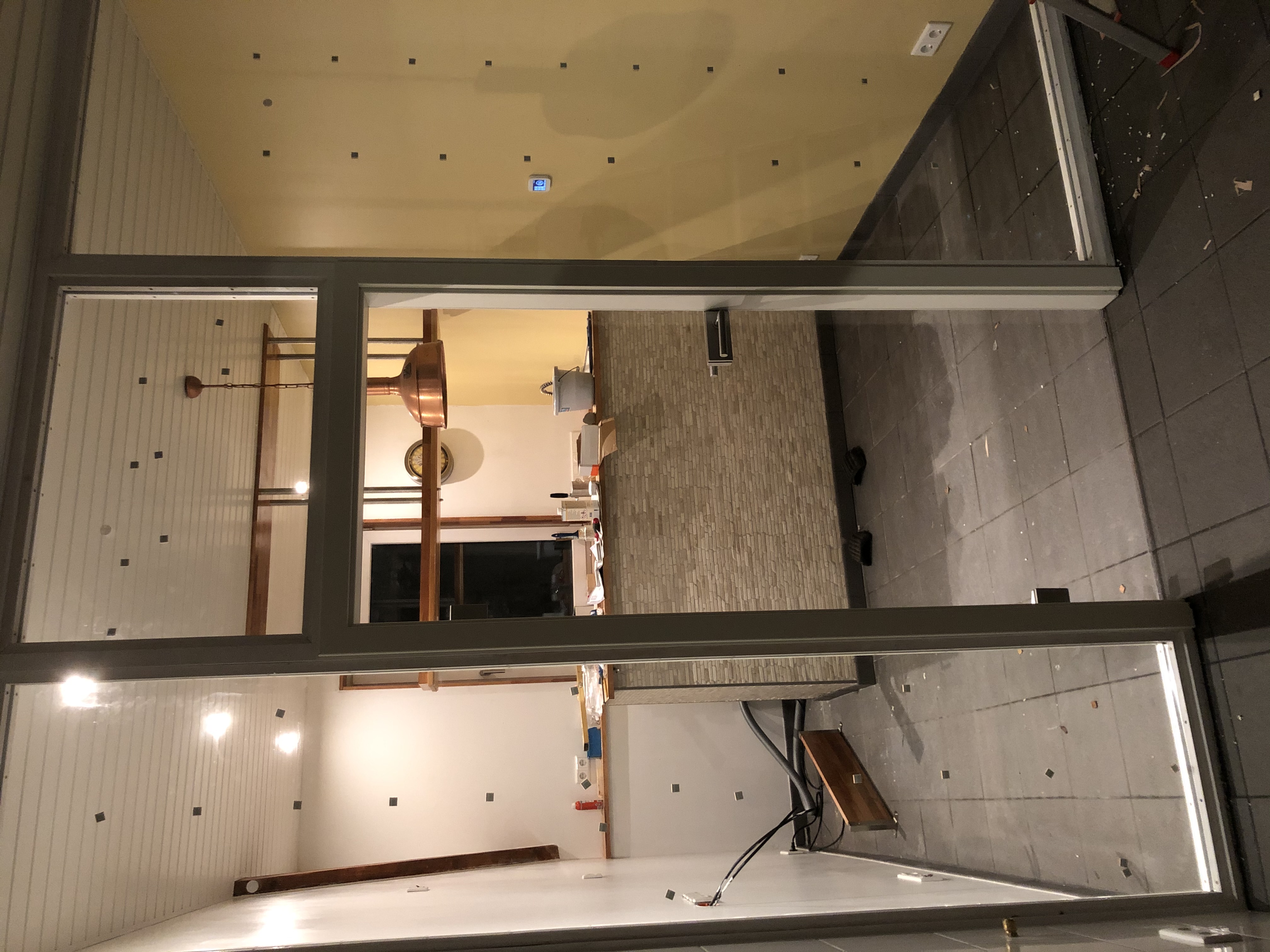 Der Aufenthaltsraum geht so langsam auch voran, der Rahmen der Glaswand ist lackiert und die ersten Lampen haben auch schon Einzug gefunden.