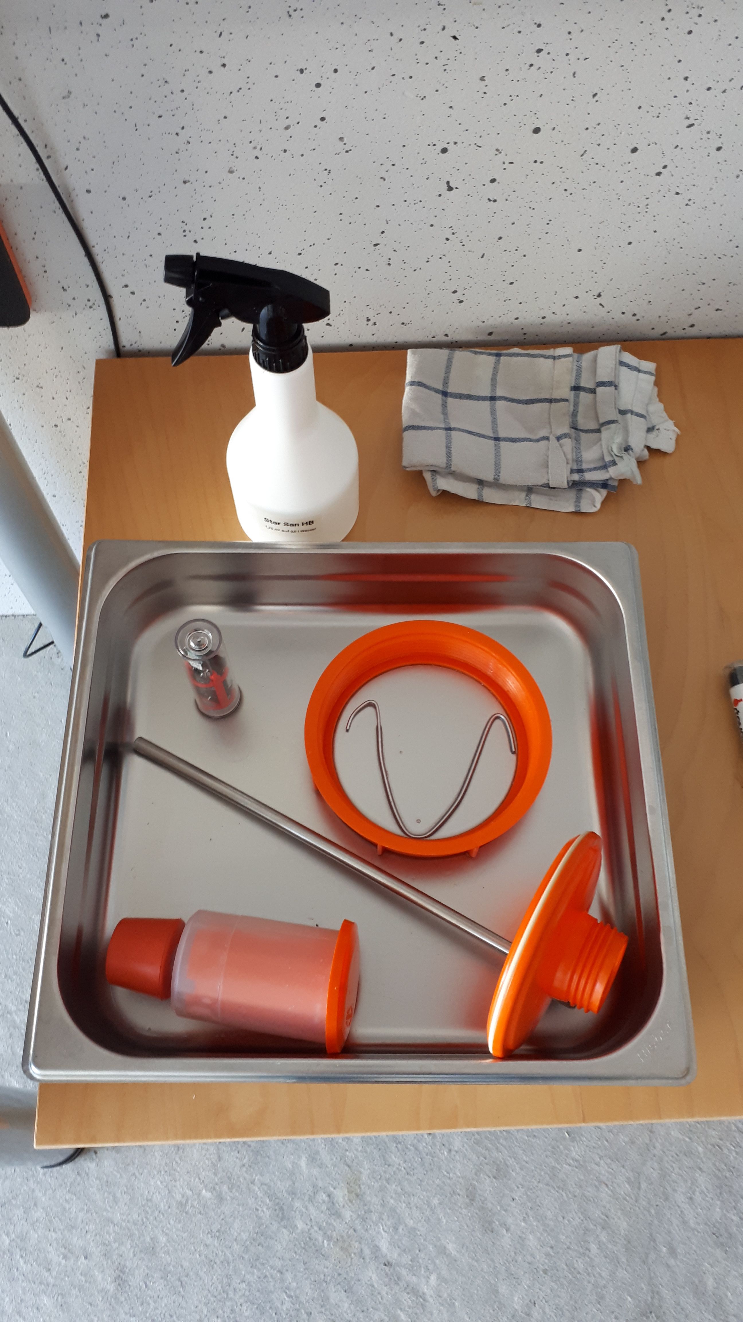 Währenddessen ist noch Zeit, das Tilt Hydrometer und die Anbauteile des Gärfasses mit Starsan HB zu reinigen.
