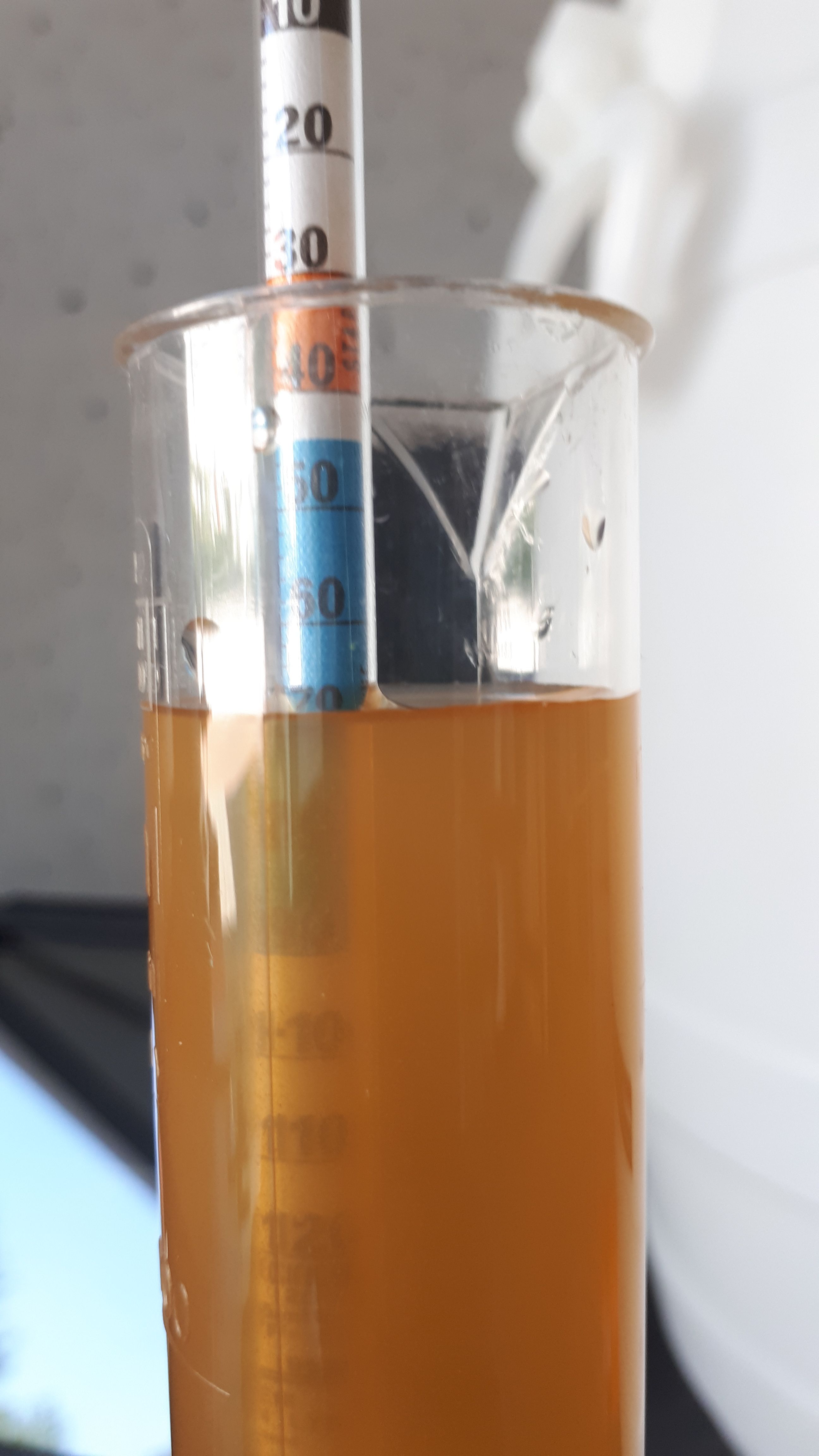 Die für das Spindeln entnommene Würze wurde mittels Eiswasser auf 20° C abgekühlt. Das Ziel (14° Plato lt. Rezept / Anleitung) wurde weit verfehlt. Ich lese hier 16° Plato. :Grübel