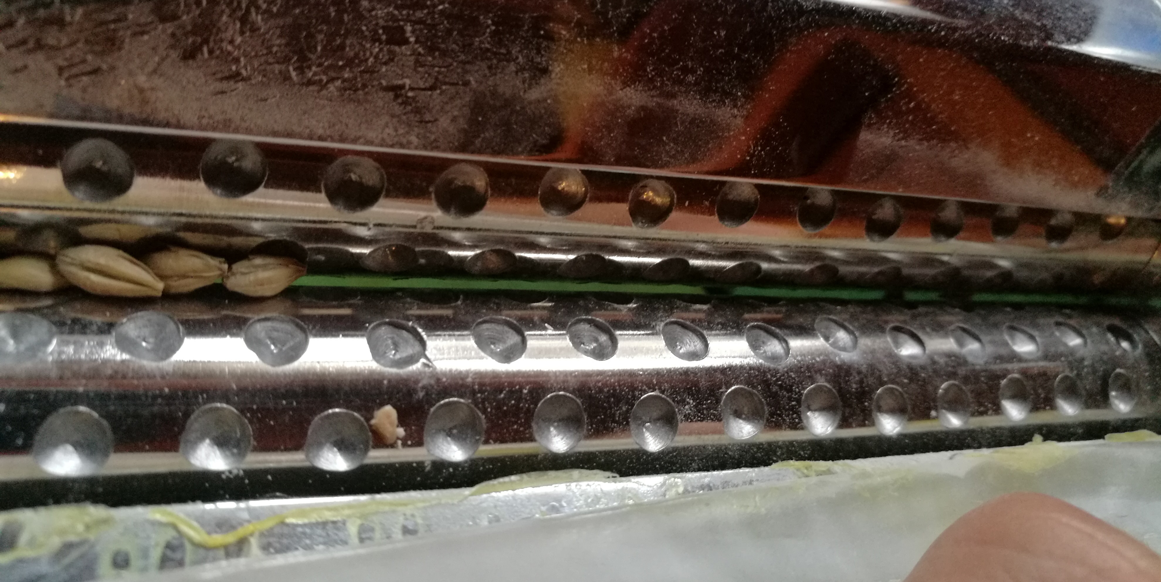 Hier meine umgebaute Nudelmaschine als Malzmühle im Einsatz: