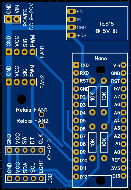DerDerDasBierBraut hat geschrieben: Donnerstag 19. September 2019, 11:23 Für die zusätzliche Regelung der Drehzahl per Spannung könnte man bei deinem Rührer ein weiteres TE818 Modul pro Lüfter einplanen und versuchen die Ausgangsspannung des TE818 über einen Analogport des Arduino und den (abgeklemmten) Poti des TE818 zu steuern. Nur so als Idee.