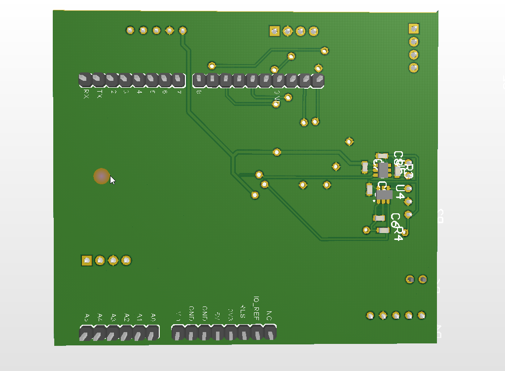 Die Platine verwenden hauptsächlich 0603 Bauelemente, Löterfahrung ist von Vorteil. Die Platine ist beidseitg bestückt. Ich hab kein Lötstopplaminat aufgetragen. Ohne dies ist das Löten jedoch schwieriger. Wenn ich nochmal eine Revision mache dann kommt Lötstopplaminat drauf, oder ich lasse sie fertigen.
