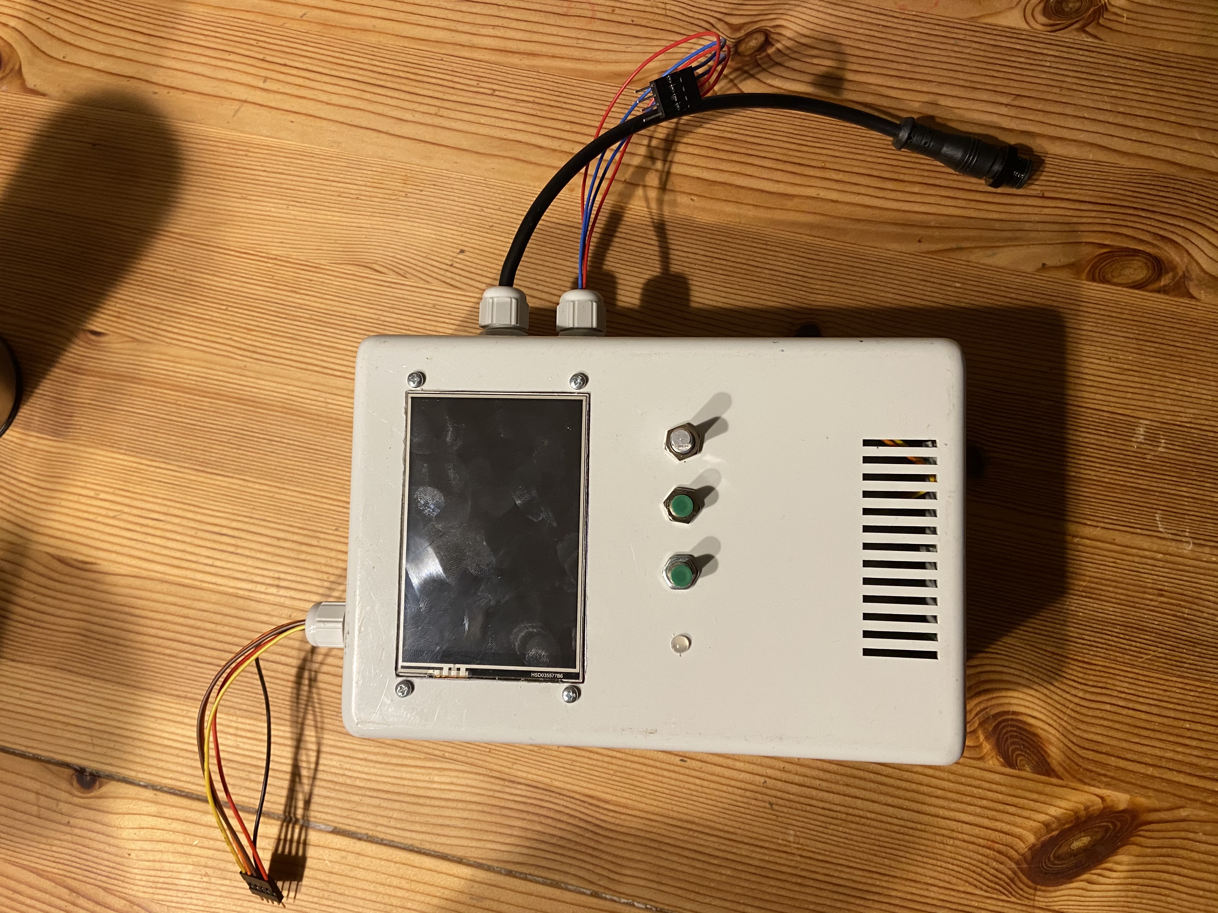 Ich hab die Steuerung in ein Gehäuse eingebaut. Die beiden Taster hab ich auch gleich verbaut,