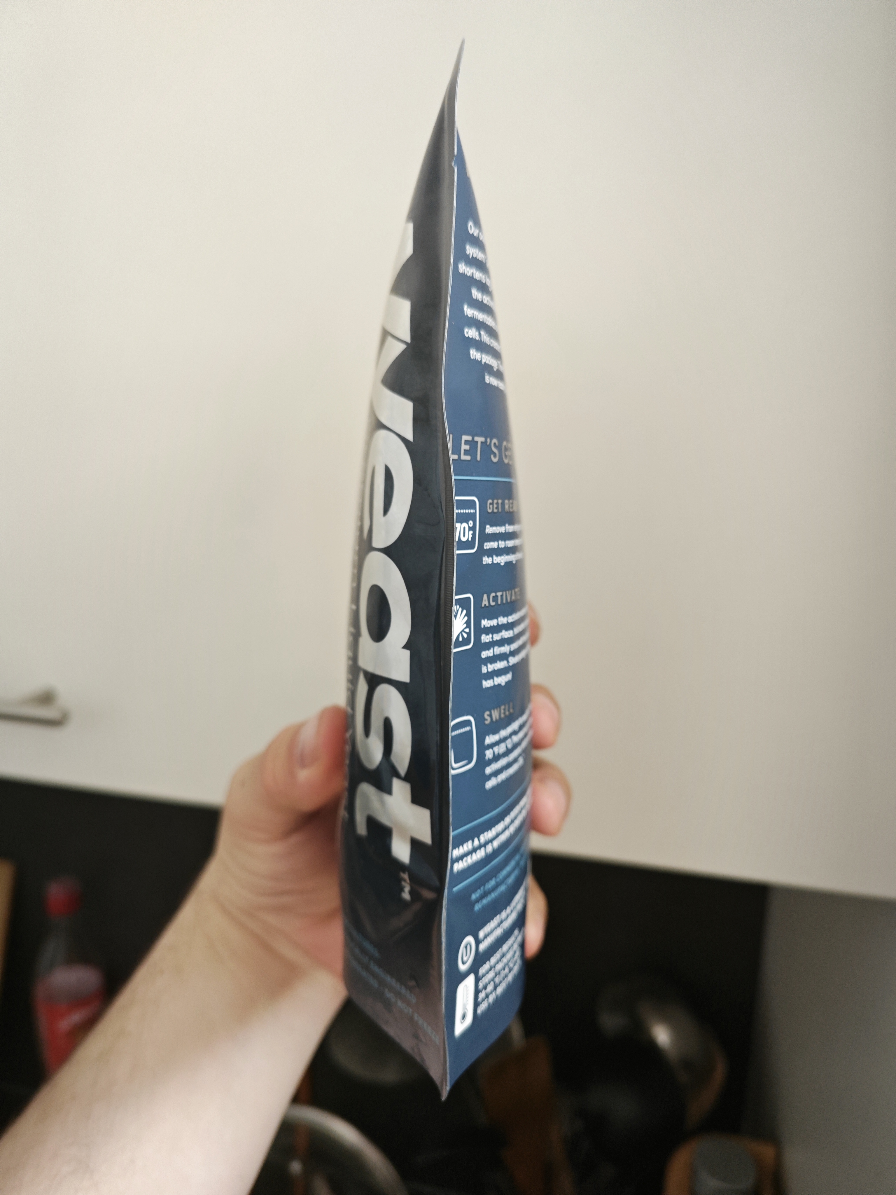 Aufgeblähte Beutel (innen und außen) kommen vor. Stellt kein Problem dar! Rechtzeitig (für jeden Monat ab MFD einen Tag vor Brautermin) den inneren Beutel smacken und bei Zimmertemperatur stehen lassen. Ich empfehle einen 1-2l Starter, geht aber auch ohne.