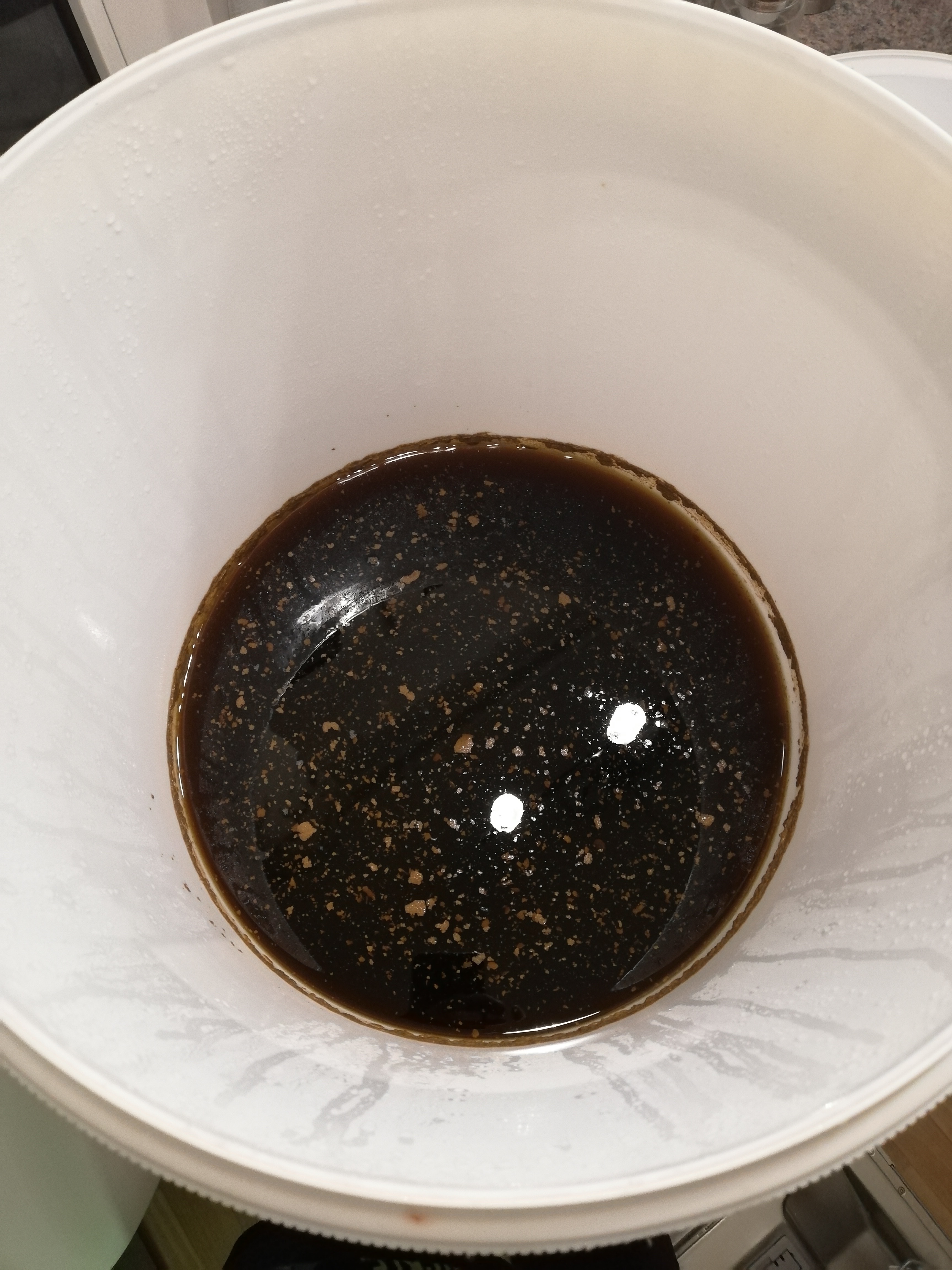 Ich hab die Hefe zugegeben, 3-4x zwischen Eimern hin und her gegossen zum Sauerstoff zuführen und dann bei 18°C zwei Wochen stehen lassen.