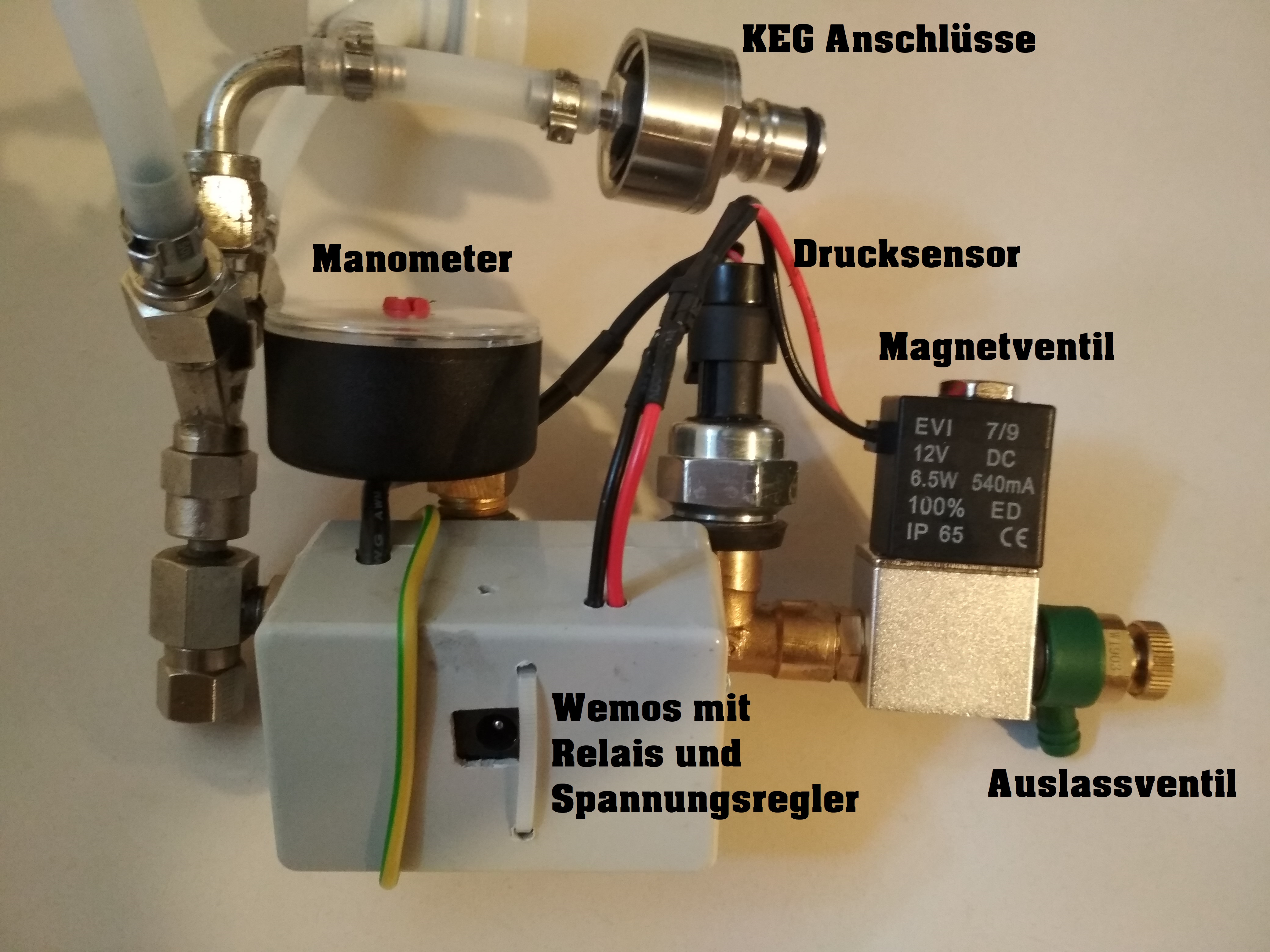 Vergiss aber bloß nicht das Überdruckventil bei der Projektvorstellung. Falls sich der Wemos mal aufhängt oder das Magnetventil klemmt willst du keine Fassbombe im Keller stehen haben