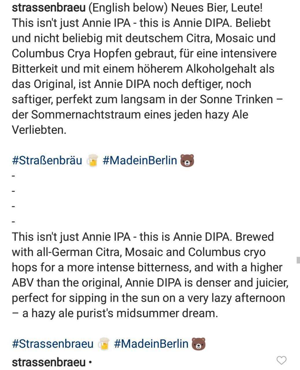habe in einem Instagram Post von Strassenbräu Berlin gelesen, dass sie ein Bier mit deutschem Citra und Mosaic gebraut haben.