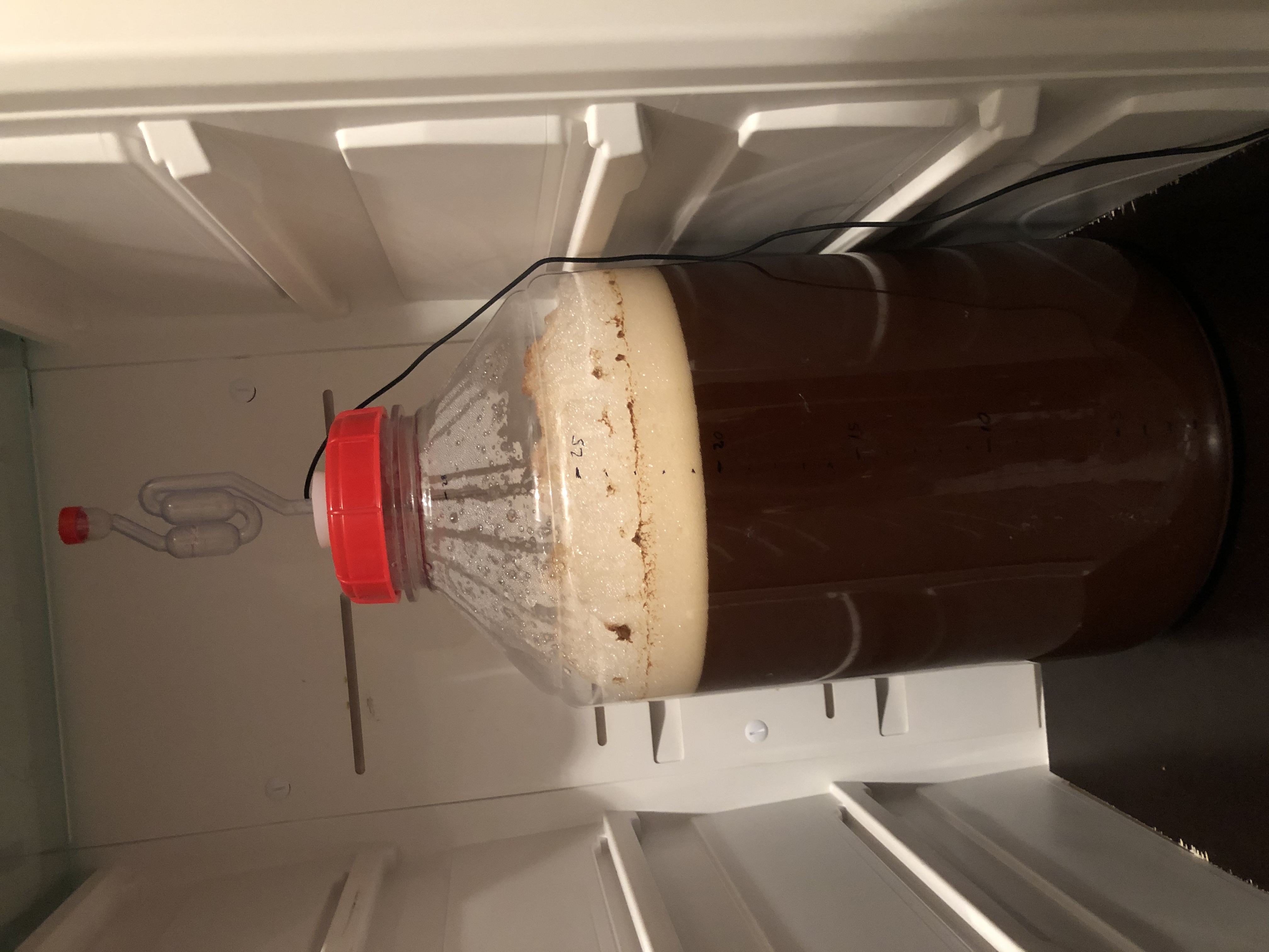 40 Liter Münchner Dunkel mit W34/78 aus Dritter Führung. Das Ganze als Dekoktion und single hop mit Diamant. Der Großteil der Gärung ist schon durch. Eine gute Woche bleibt es aber noch stehen.