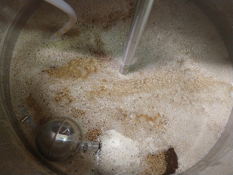 Genau das kommt auf meinem Planeten nicht vor, dass die festen Bestandteile in einer Flüssigkeit in der Schwebe bleiben um einen homogenen Brei zu bilden - und pünktlich zum Läutern sinken dann die festen Bestandteile zum Boden ab, um ein Treberbett zu bilden..