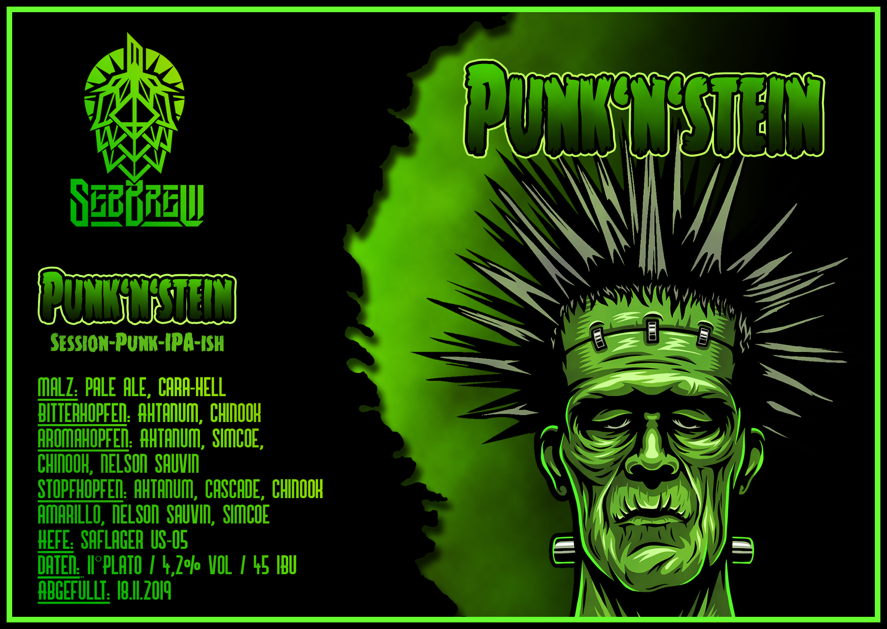 Gefällt mir sehr gut, aber ein kleiner Fehler ist drin:Seb Brannigan hat geschrieben: Dienstag 3. Dezember 2019, 23:43 Mein aktuell in der Lagerung befindliches IPA. Sollte in die Richtung Punk-IPA gehen, ist aber ein wenig alkoholärmer geworden. Schmeckt aber trotzdem ganz hervorragend.![]()